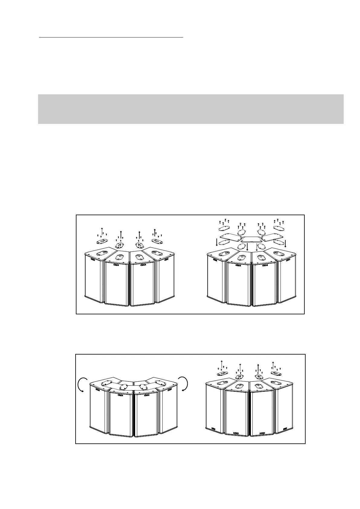 - Position bottom external plates, angle plates and top external plate from GPI-ANPL kits to required inter-cabinet angle value