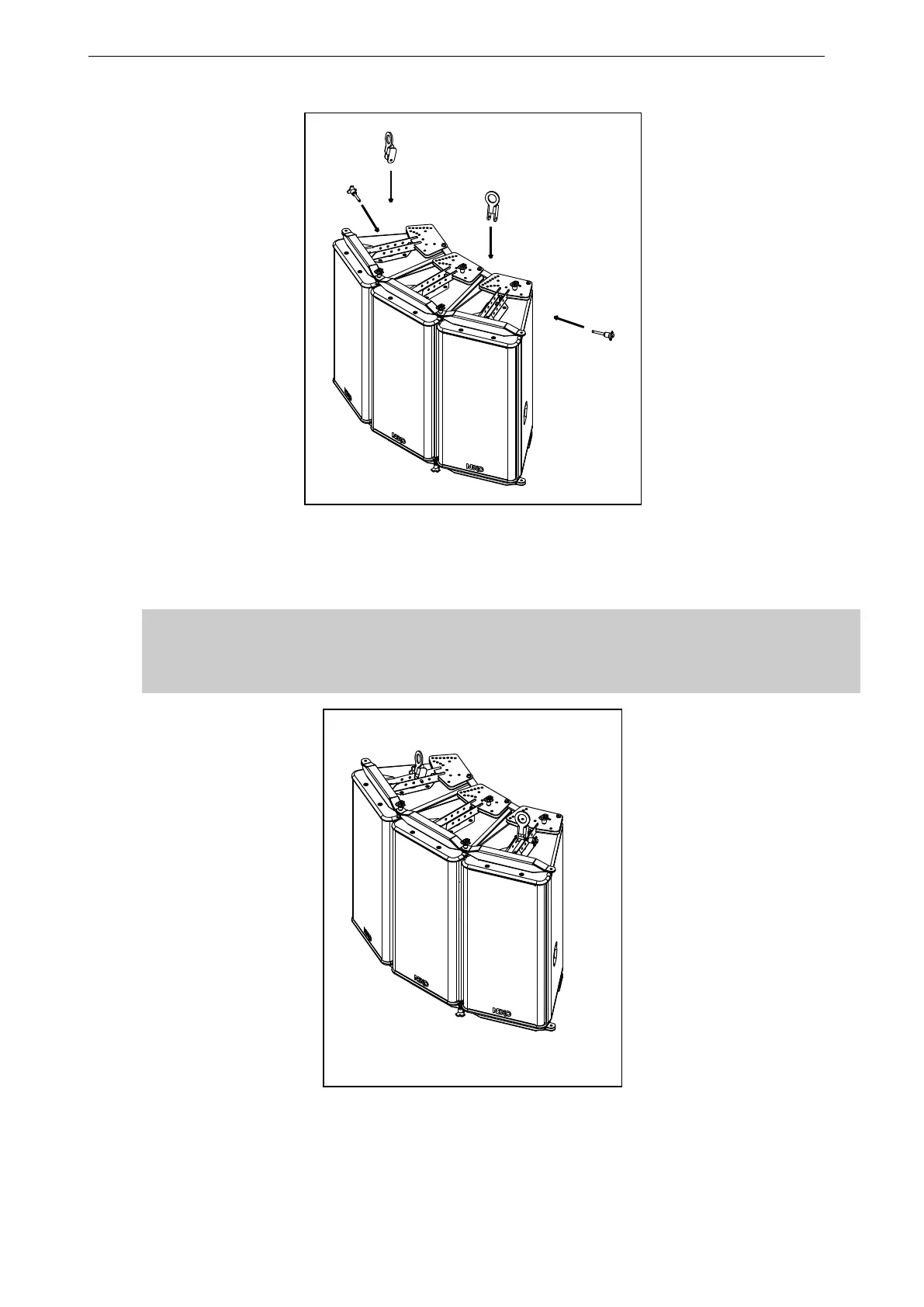 Lift and position assembly, connect lifting rings to suspension points with sling and
