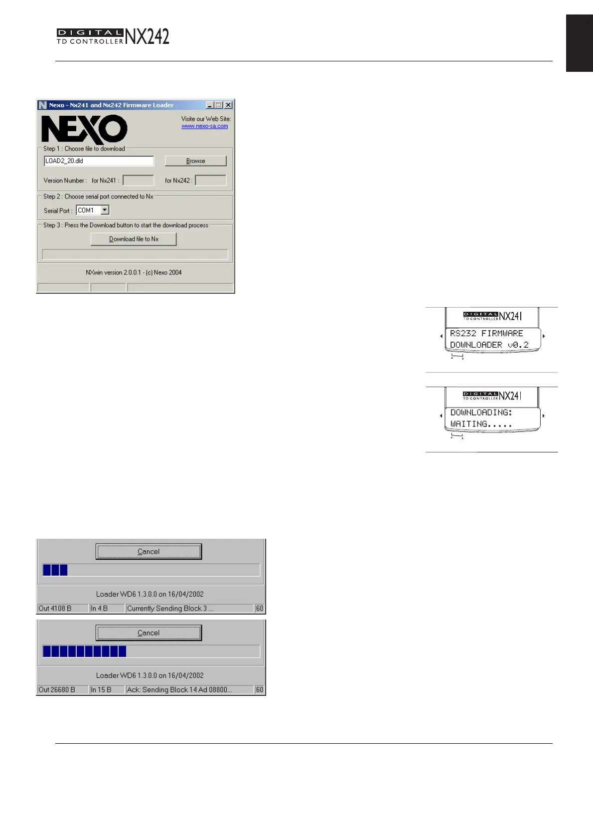 acknowledges the reception both on the computer and in the NX242’s LED screen. Downloading
