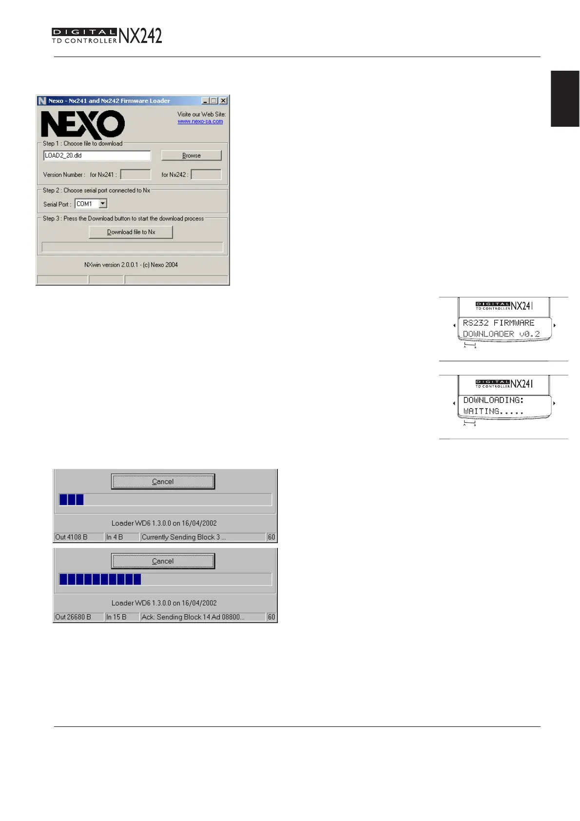 chargeur envoie le premier bloc de code au NX242. Le NX242 accuse