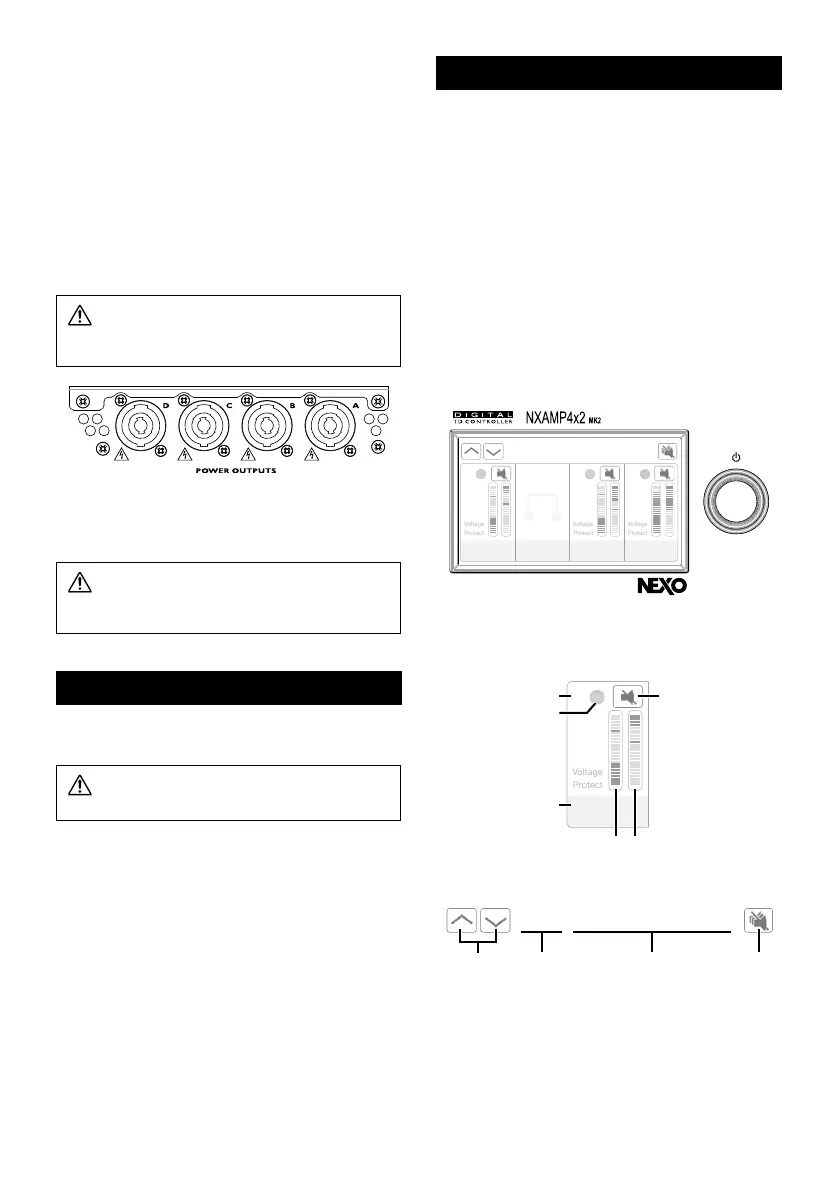 NXAMPmk2는 4개의 NL4 출력을 사용하여 스피커를 연결합니다. 핀
