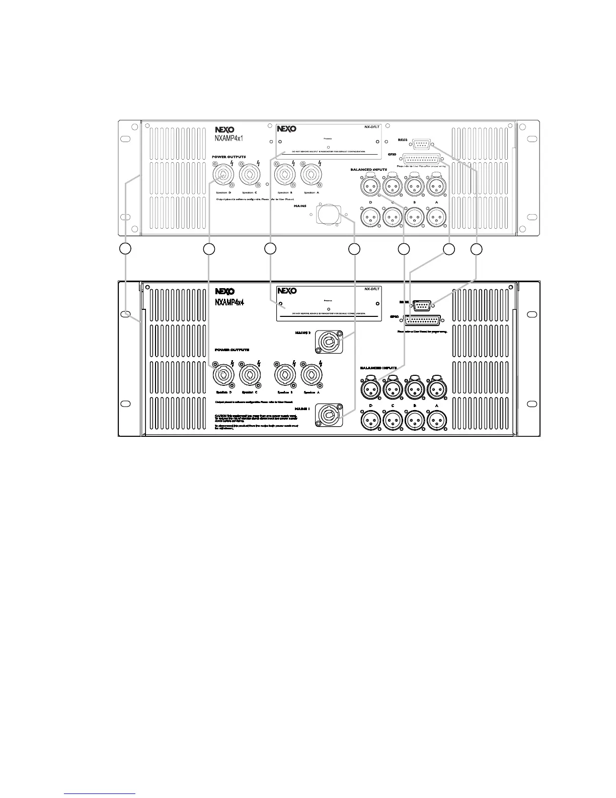 • On NXAMP4x4, the plugs are two Powercon 30A for the 100 ~ 120 Volts model (ref.