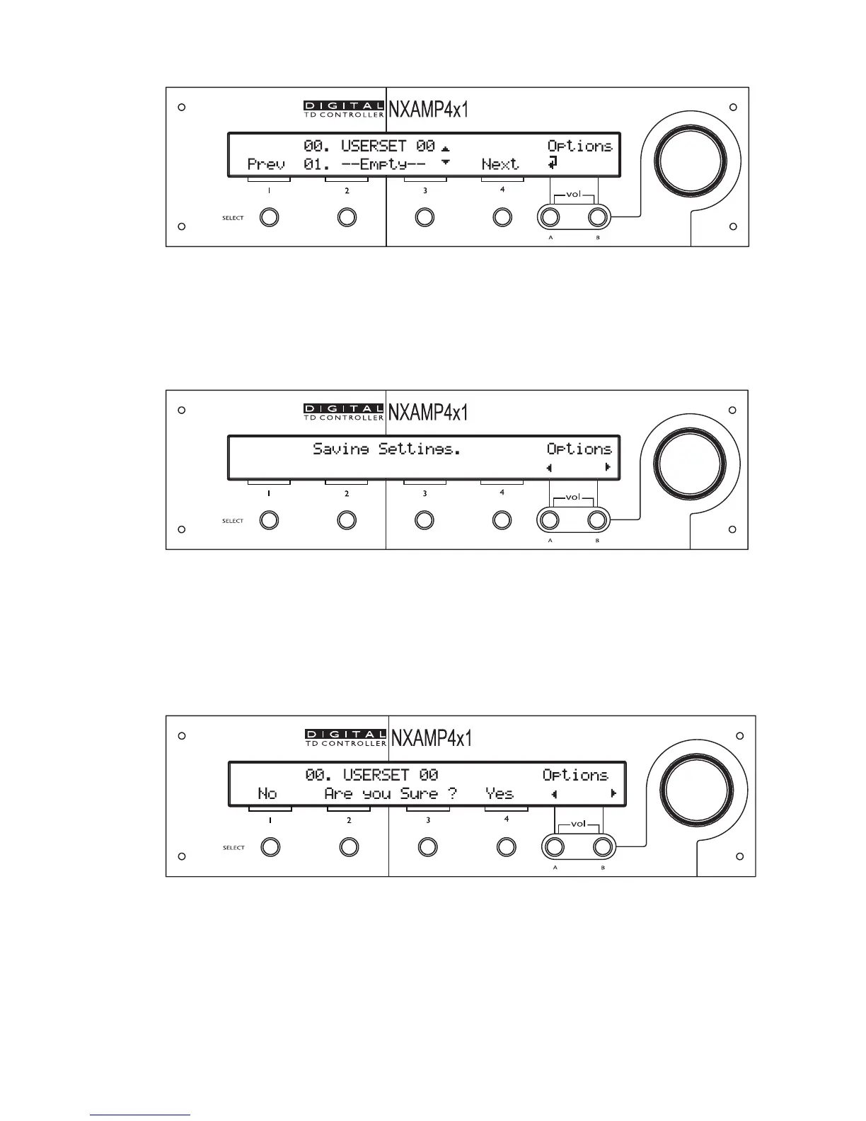chosen memory block appears on the top line of the LCD screen. Then press the ‘Select 4’