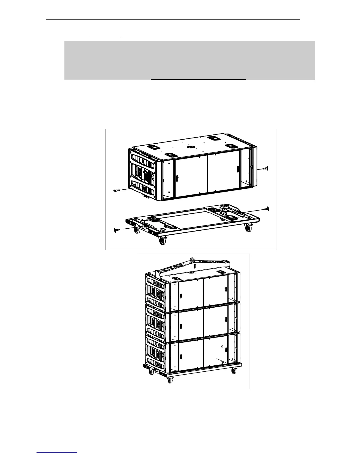 • The first RS18 must be locked to the RS18 dolly using 4 push-pins according to below drawing;