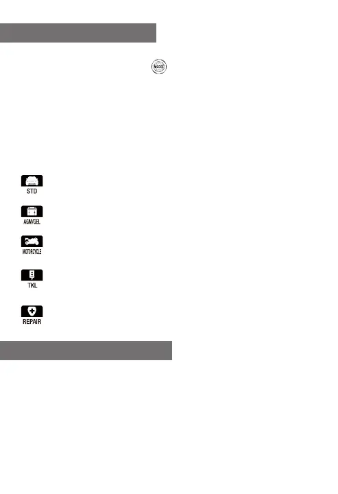 1. Wählen Sie die entsprechenden Modi (STD/AGM/GEL/MOTORCYCLE), um die Batterie