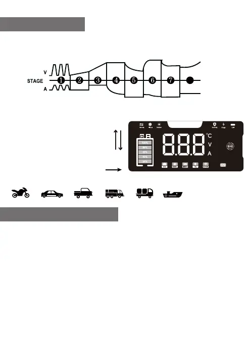 Il caricabatterie intelligente NC101 PRO ha un processo di carica in otto fasi che funziona