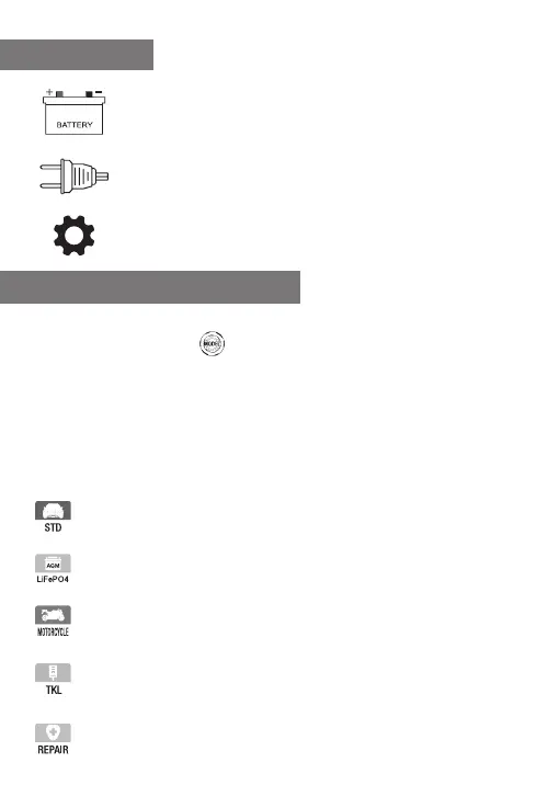 NEXPEAK NC215 battery charger has five(5) modes: STD, LiFePO4, MOTORCYLE
