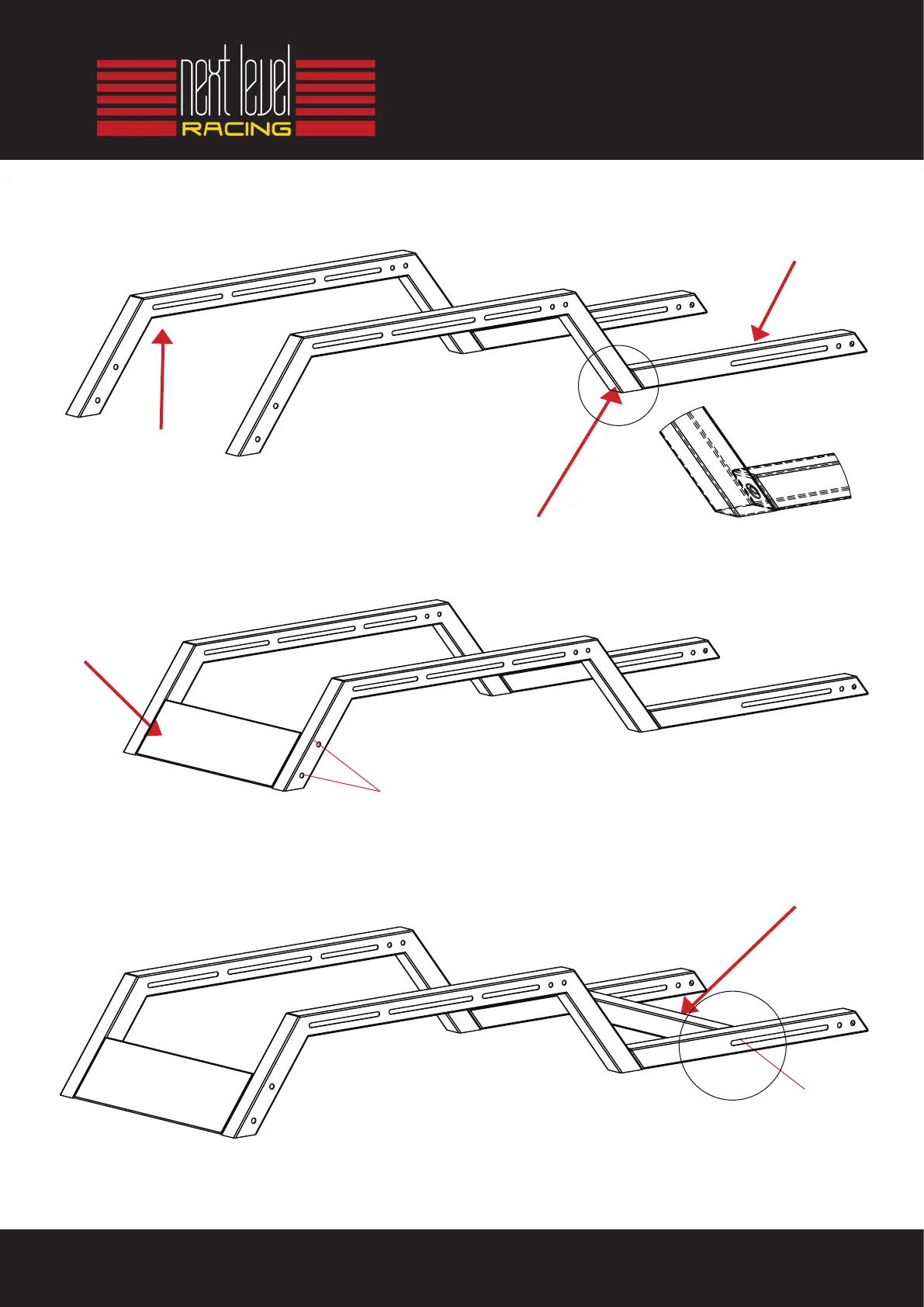 Next Level Racing F-GT - FRAME ASSEMBLY; Step 1: Frame Assembly; Step 2: Front Plate Attachment; Step 3: Support Post Installation