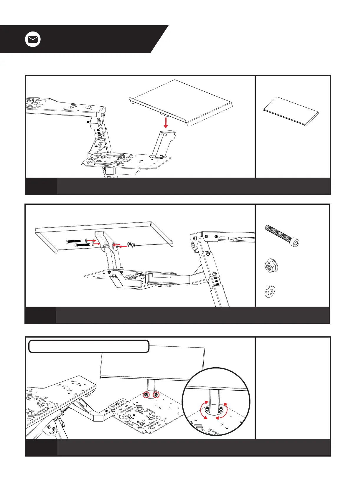 Align the holes on the Keyboard Plate with the through holes on the Keyboard Angle Bracket.