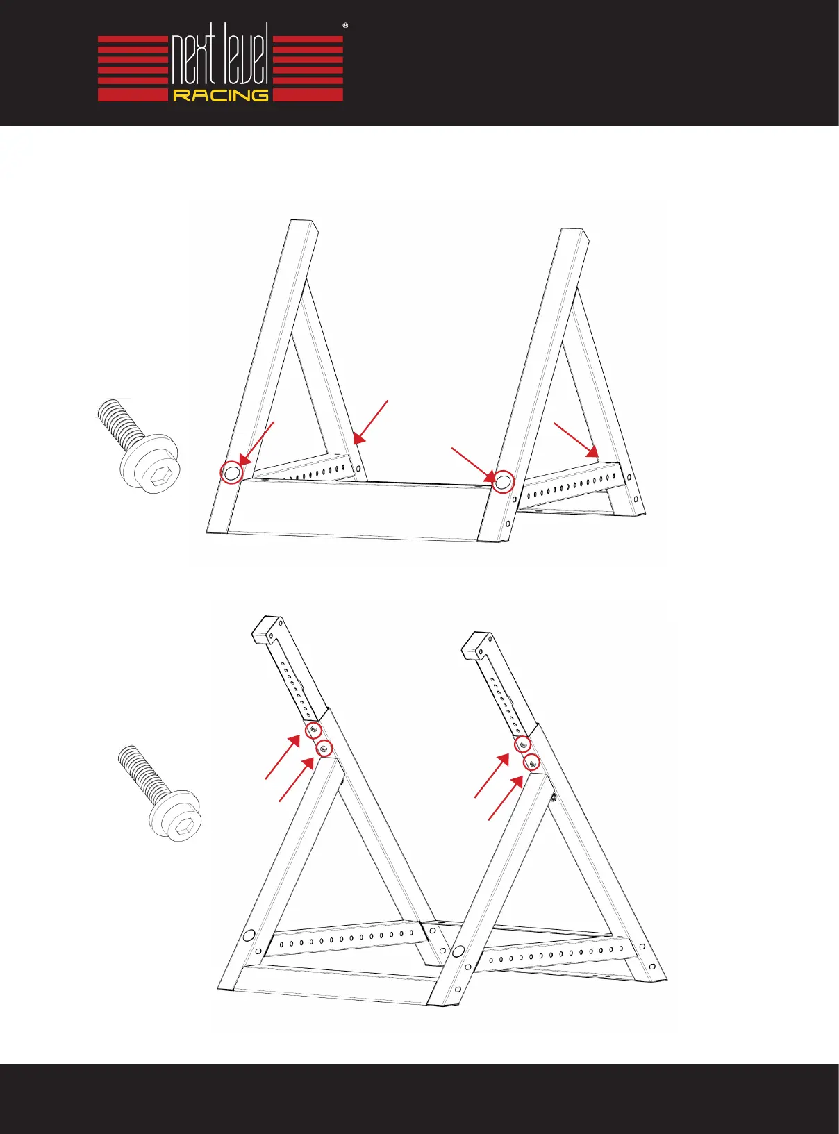 Next Level Racing Wheel Stand DD - Assembly Steps; Step 1: Connecting Main Frame; Step 2: Attaching Support Beams