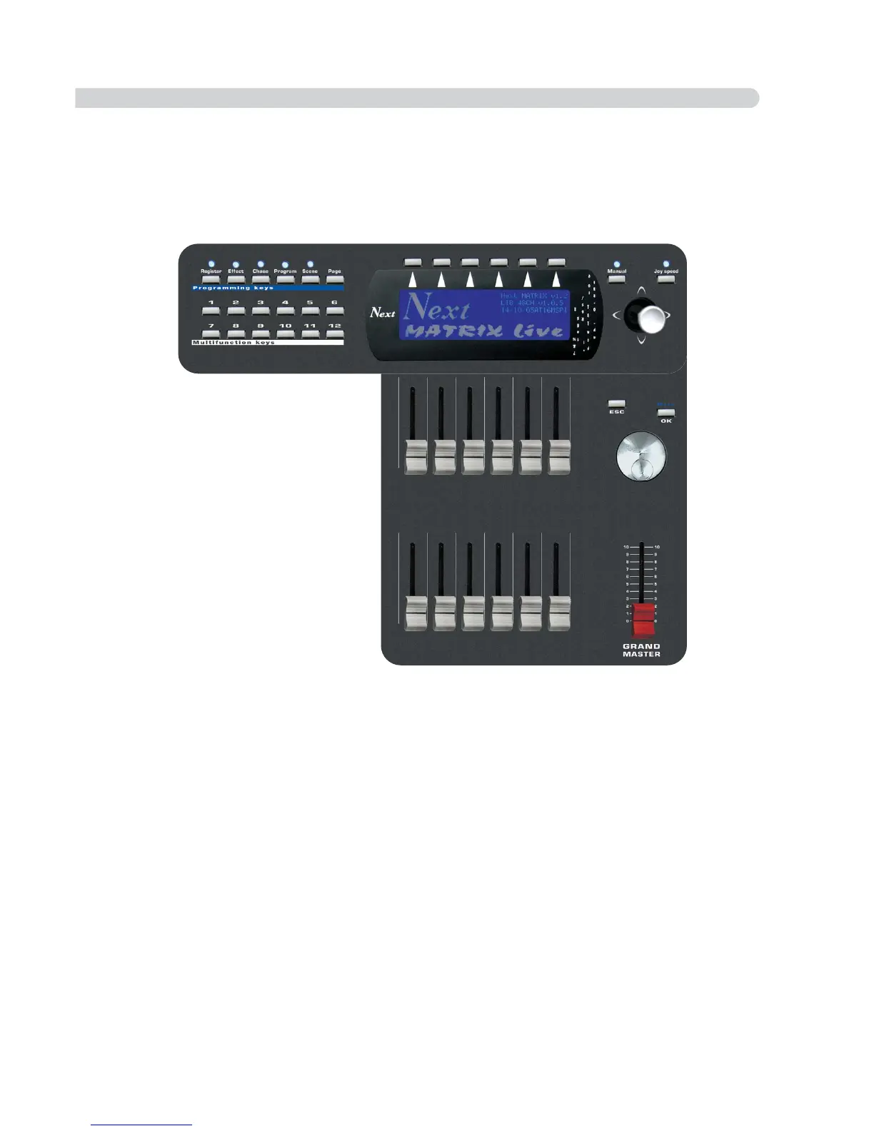 • 1 Grand Master fader: general control of output levels.