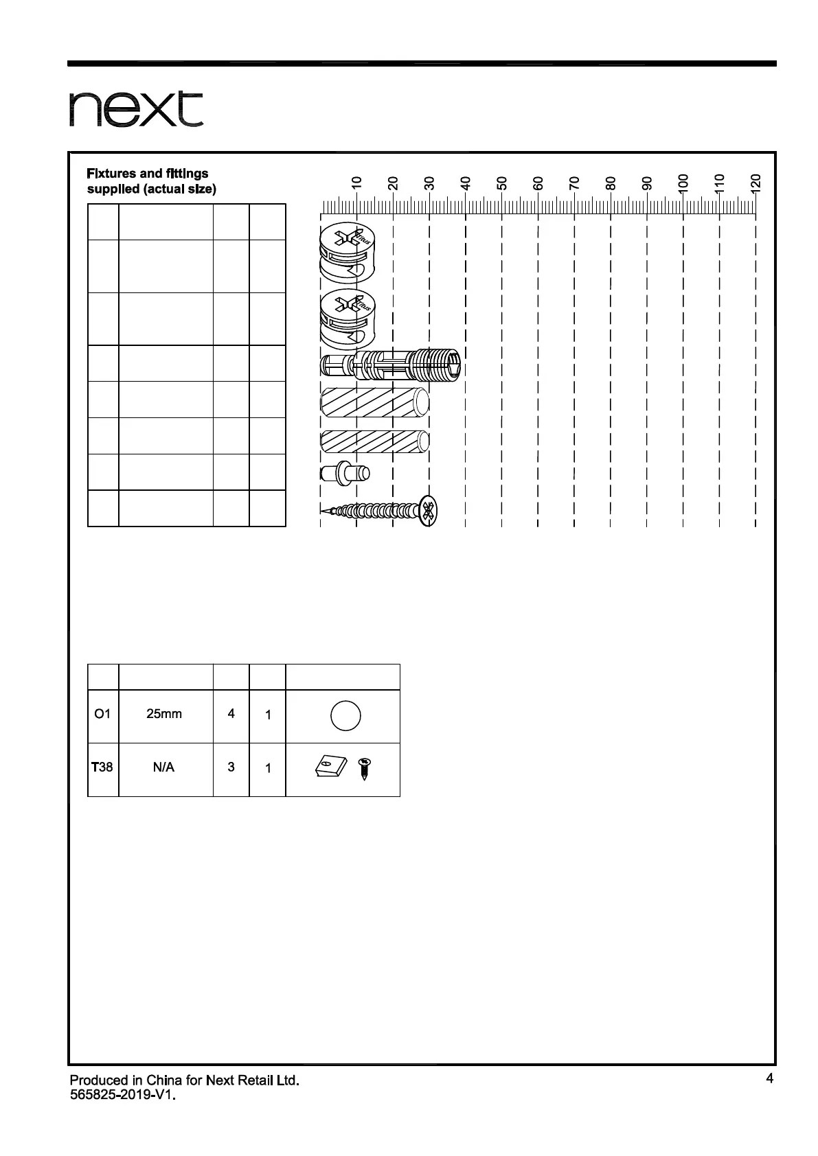 Fixtures and fittings supplied ( not to scale)