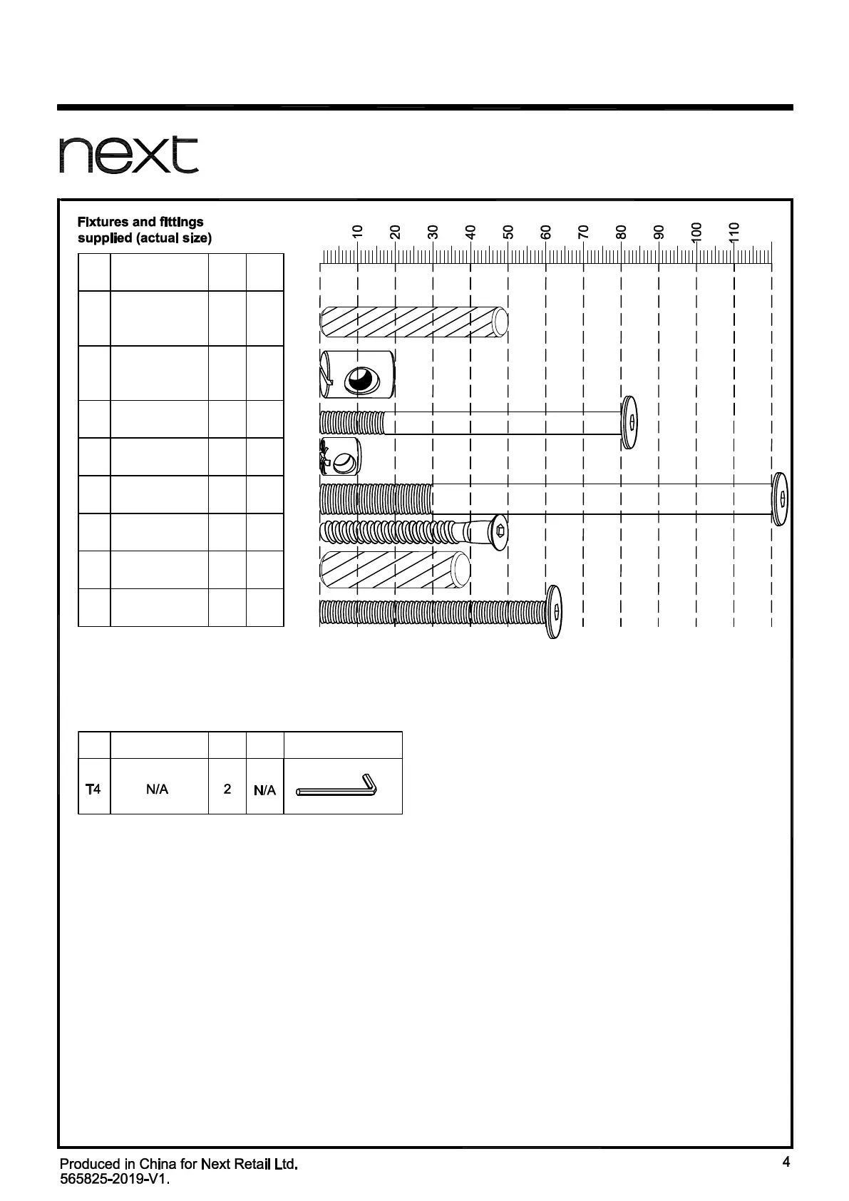 Fixtures and fittings supplied ( not to scale)