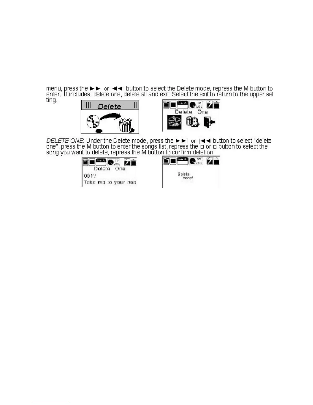 DELETE ALL: Under the Delete mode, press the ►►| or |◄◄ button to