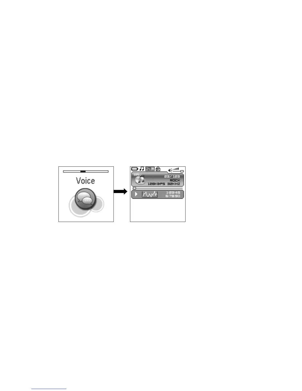 Press rewind button or fast forward button in the main menu to select Voice function and