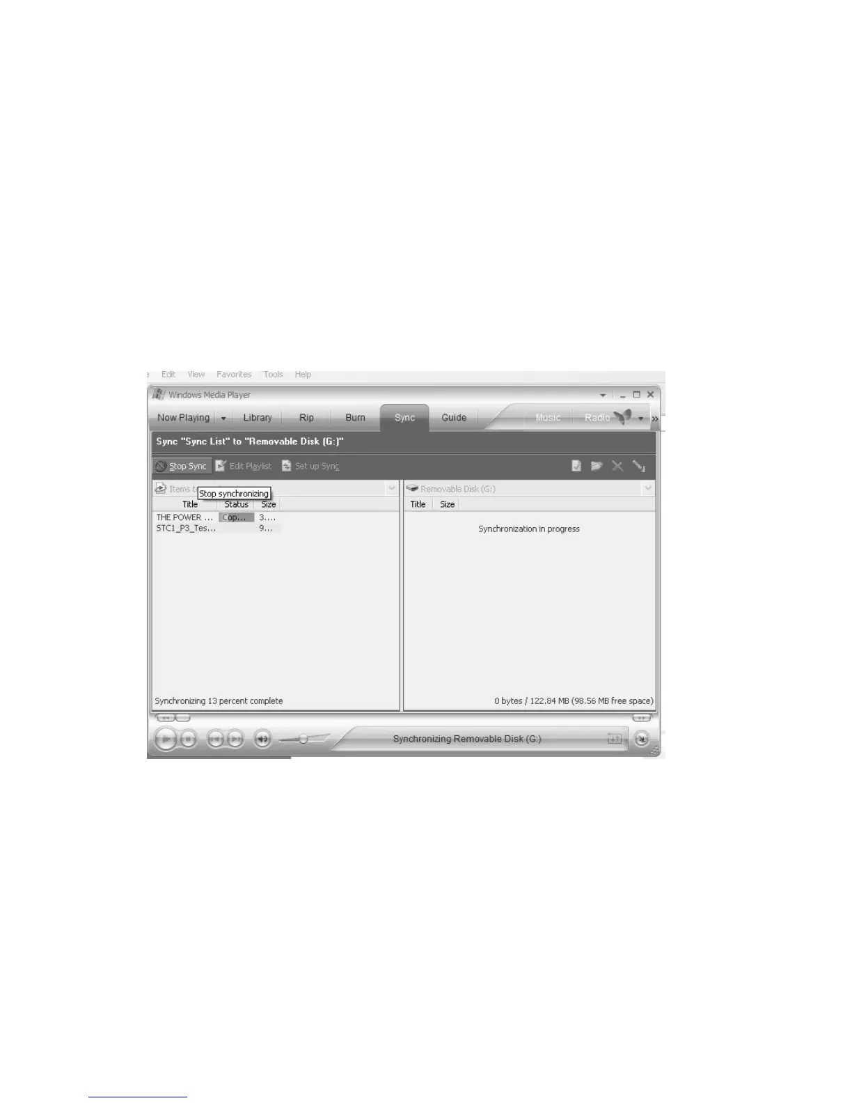 E. On “Sync” window, choose the desired WMA music with DRM as step B and choose