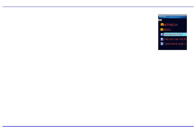 2. Use the [S] or [T] button to select File, and press the [X] button. The music file list appears on the screen.