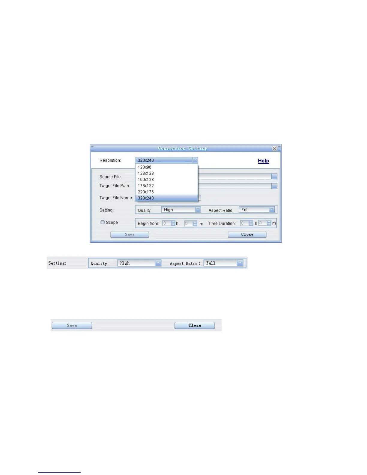 (5) Set the conversion quality in the Quality field and display mode in the Aspect Ratio filed.