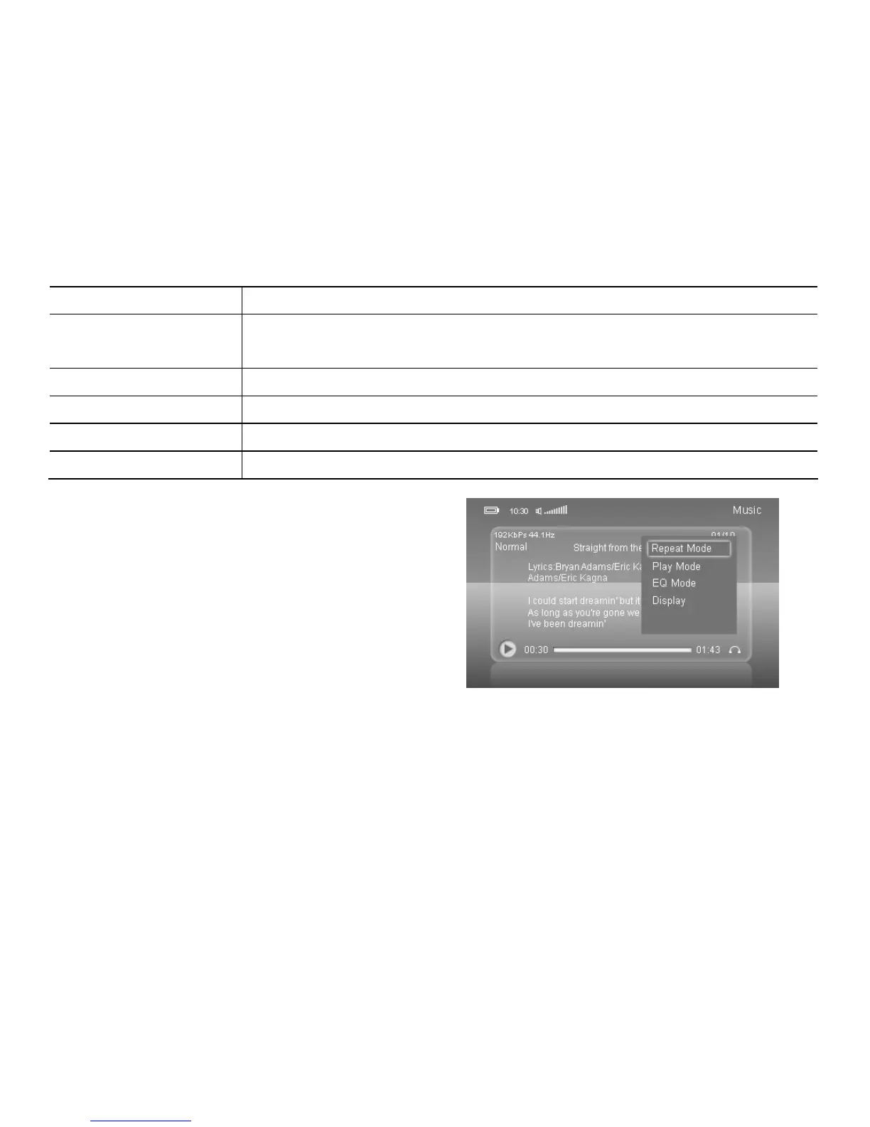 ·Play Mode –Play all music files stored in the player in order or shuffle.