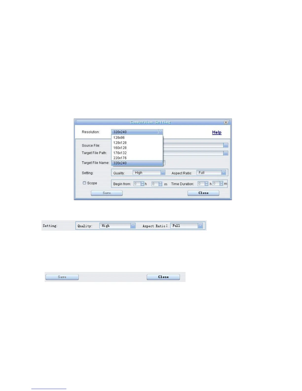 (5) Set the conversion quality in the Quality field and display mode in the Aspect Ratio