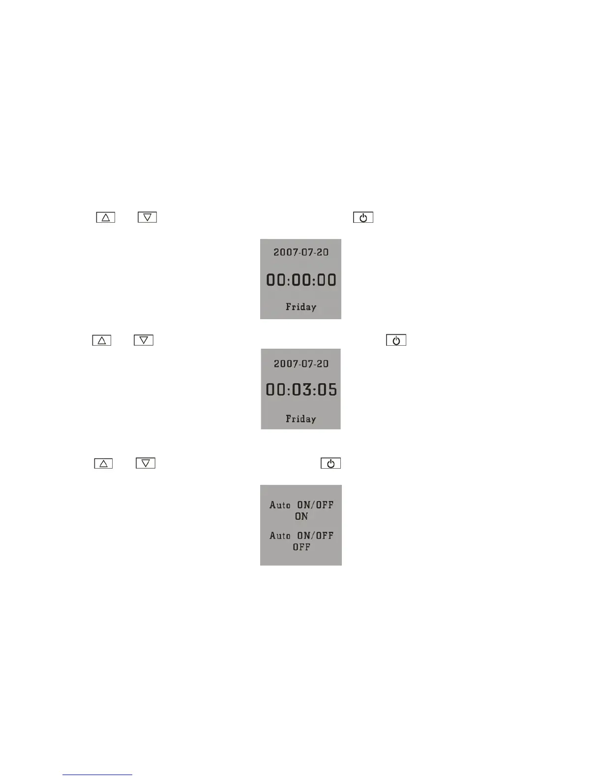 or to Auto ON/OFF, then press , it enters into the Auto ON/OFF setup as