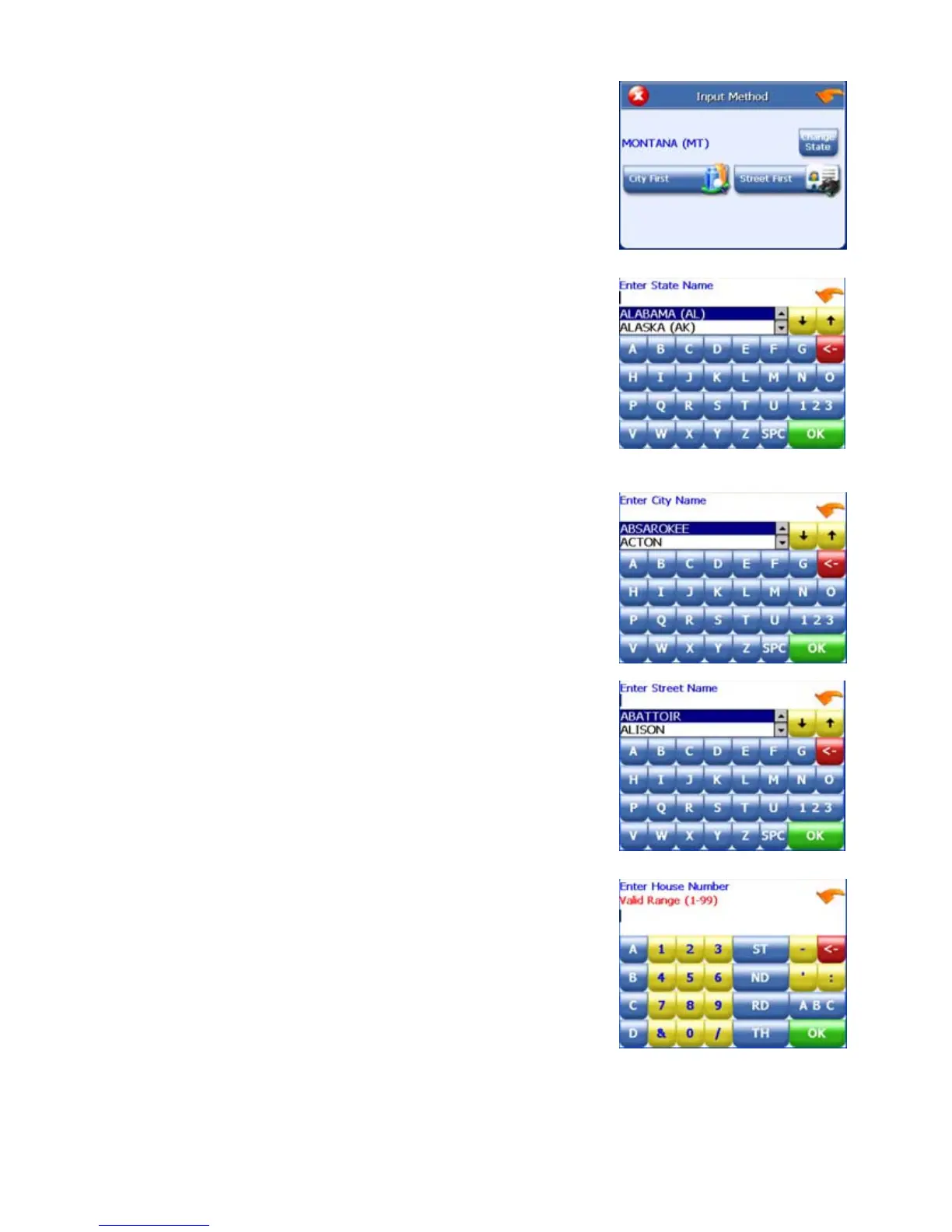 7. Tap the letters to enter the name of the street. Tap OK