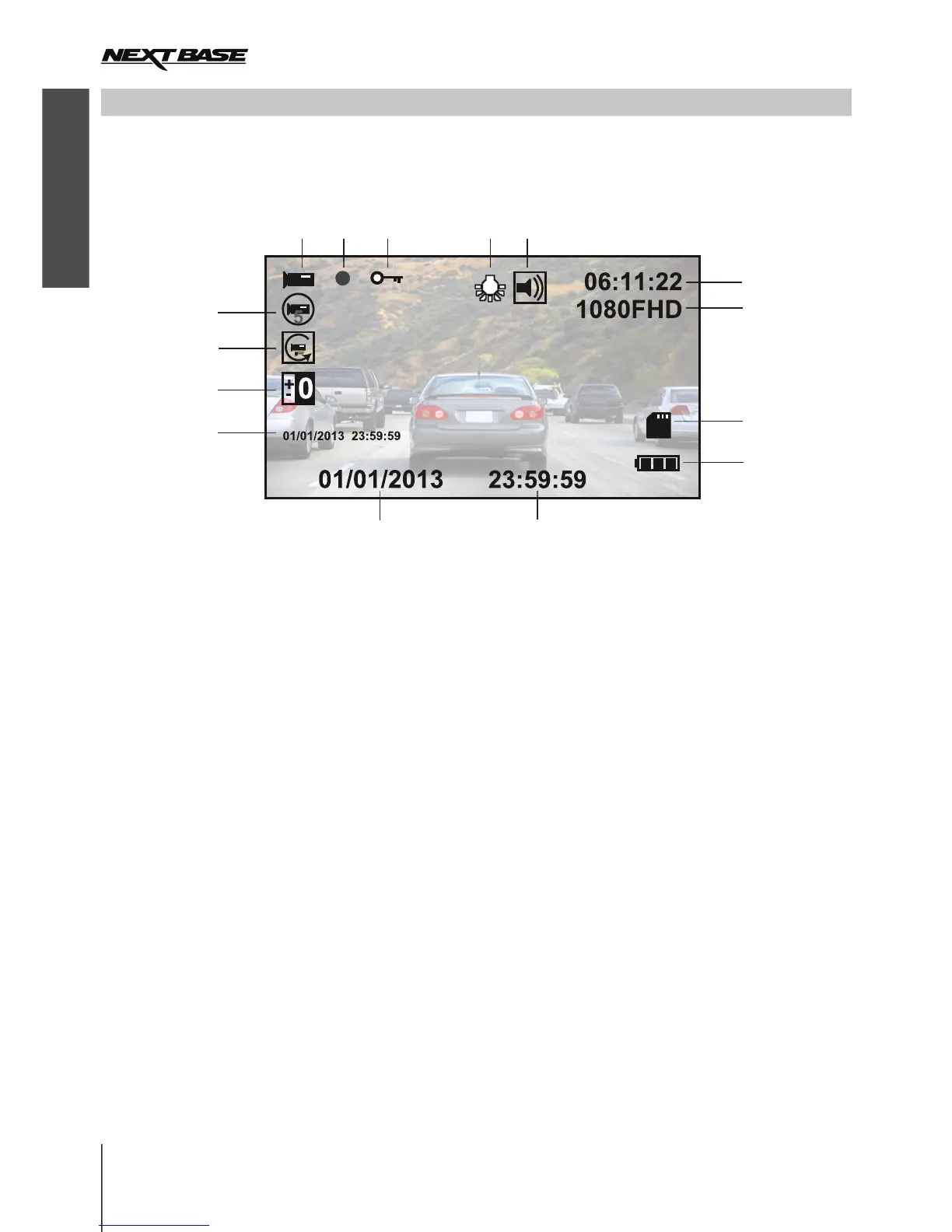 The key below explains the various information displayed on the screen when your iN-CAR CAM is in Video mode,