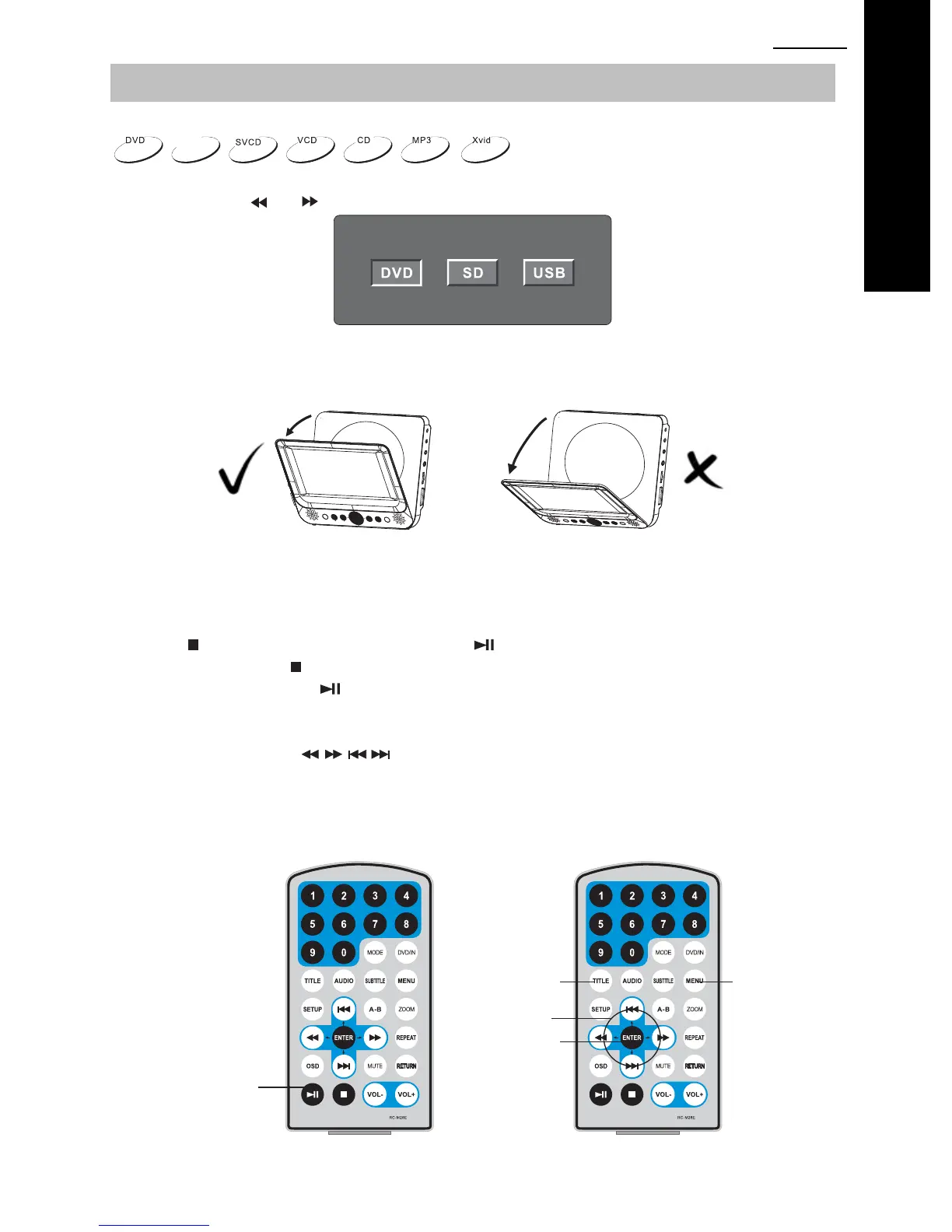 : Please do not disconnect USB devices or unplug SD/MMC cards whilst they are playing.