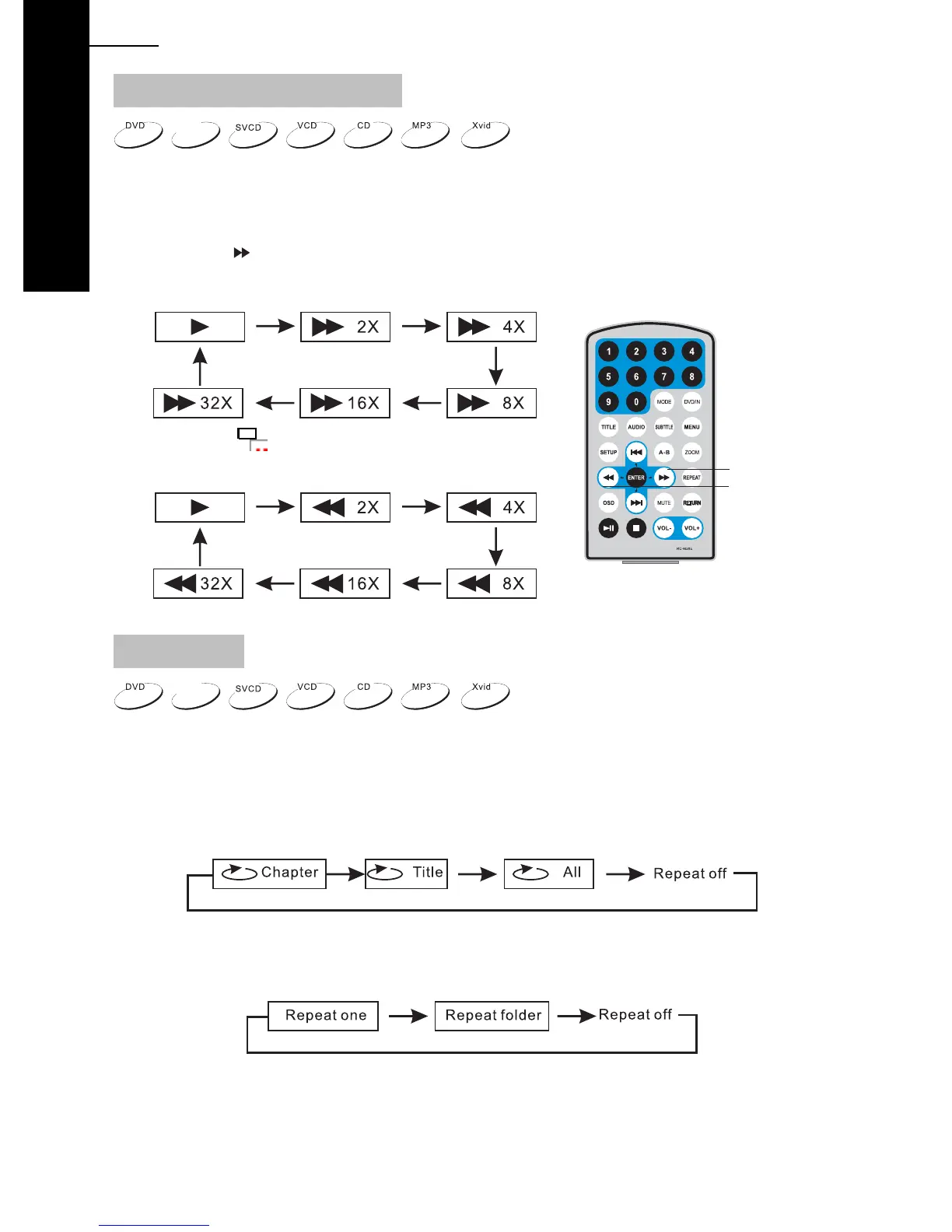 Für DVDs drücken Sie REPEAT, um ein Kapitel zu wiederholen; drücken Sie erneut, um einen