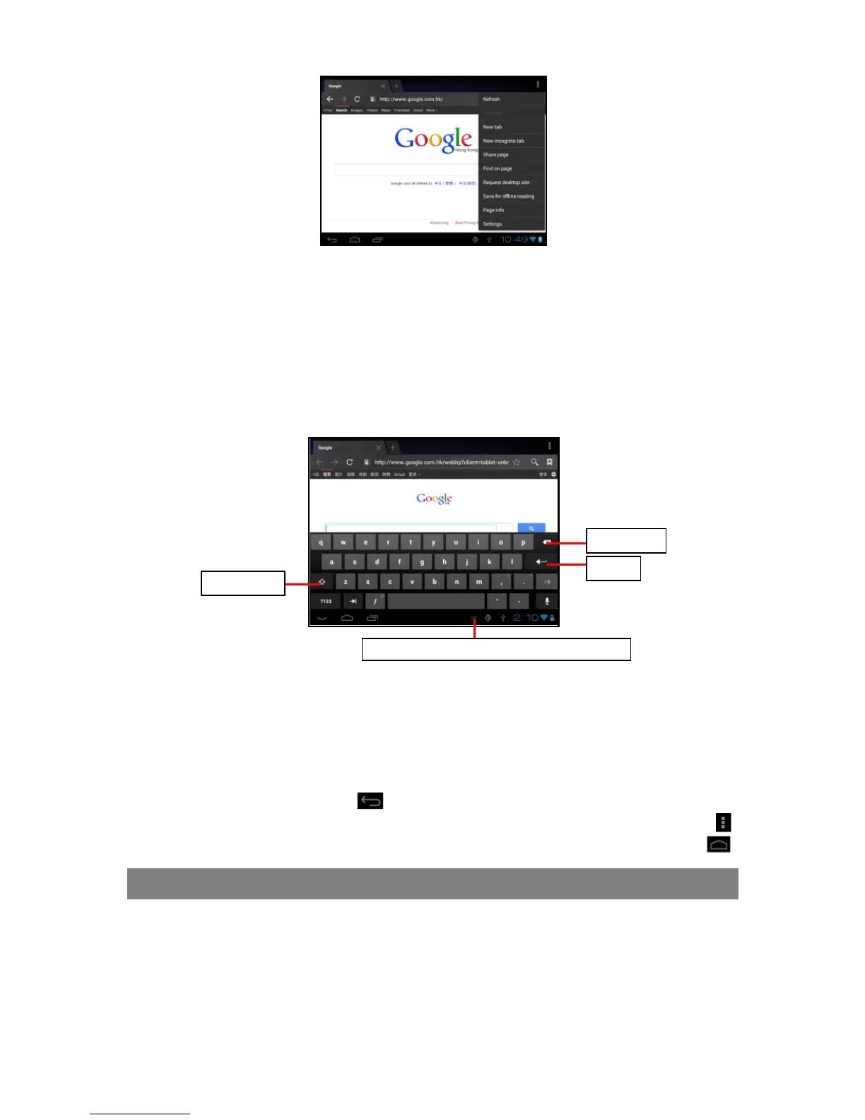 du clavier virtuel, vous pouvez entrer une adresse de site Web ou tout autre texte