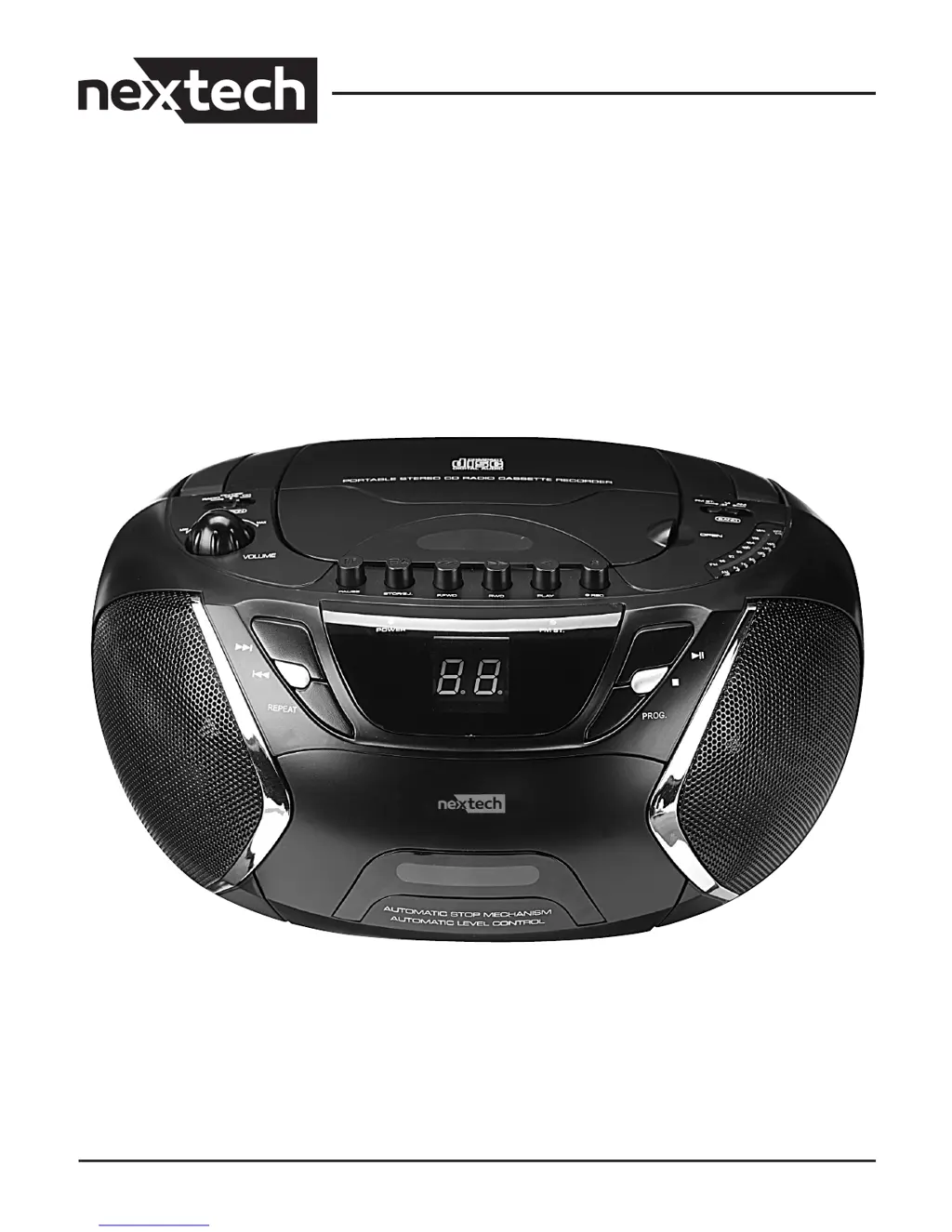 If your Nextech Portable Stereo System has no sound or power, first, check the volume and adjust it if necessary. Then, ensure the AC power cord is securely connected. Finally, make sure the batteries are correctly inserted and are not dead; replace them if needed.