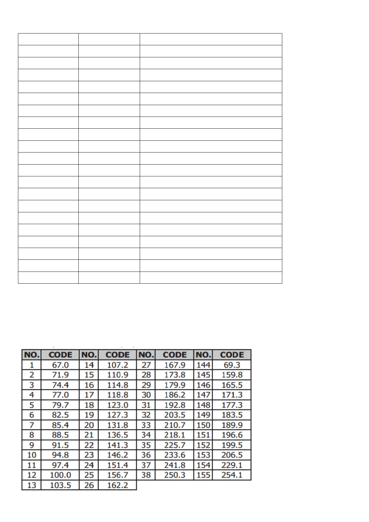 50 Groups CTCSS CODE (Hz)