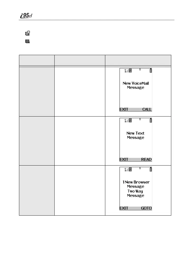 These message alert screens appear if the new message is the only message you