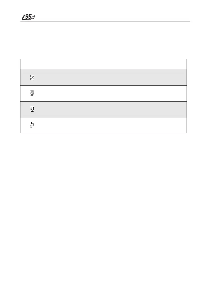 and Numeric. When you are using T9 Text Input, an icon in the top right corner