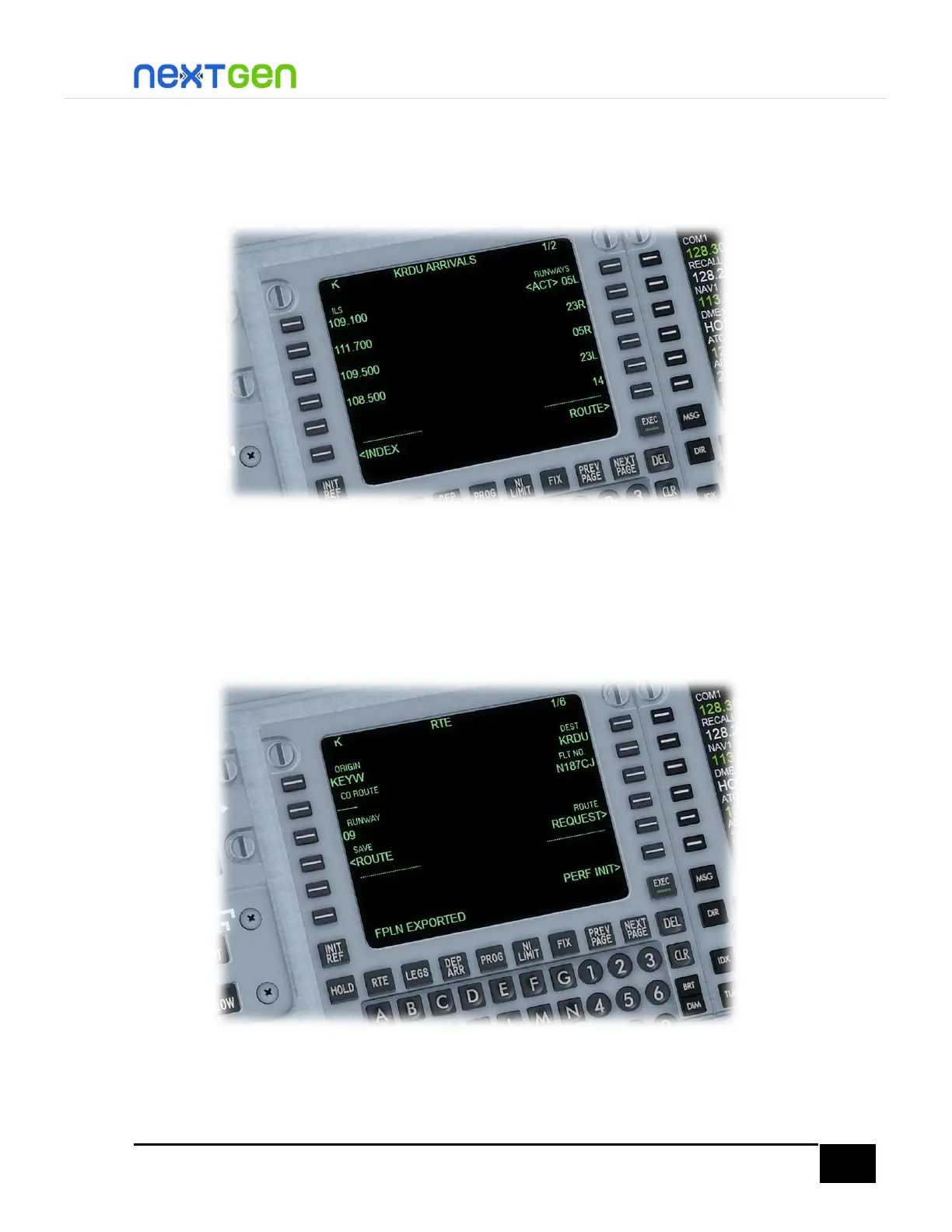 If you want to save the flight plan for further use, go to RTE page by pressing the RTE button, then