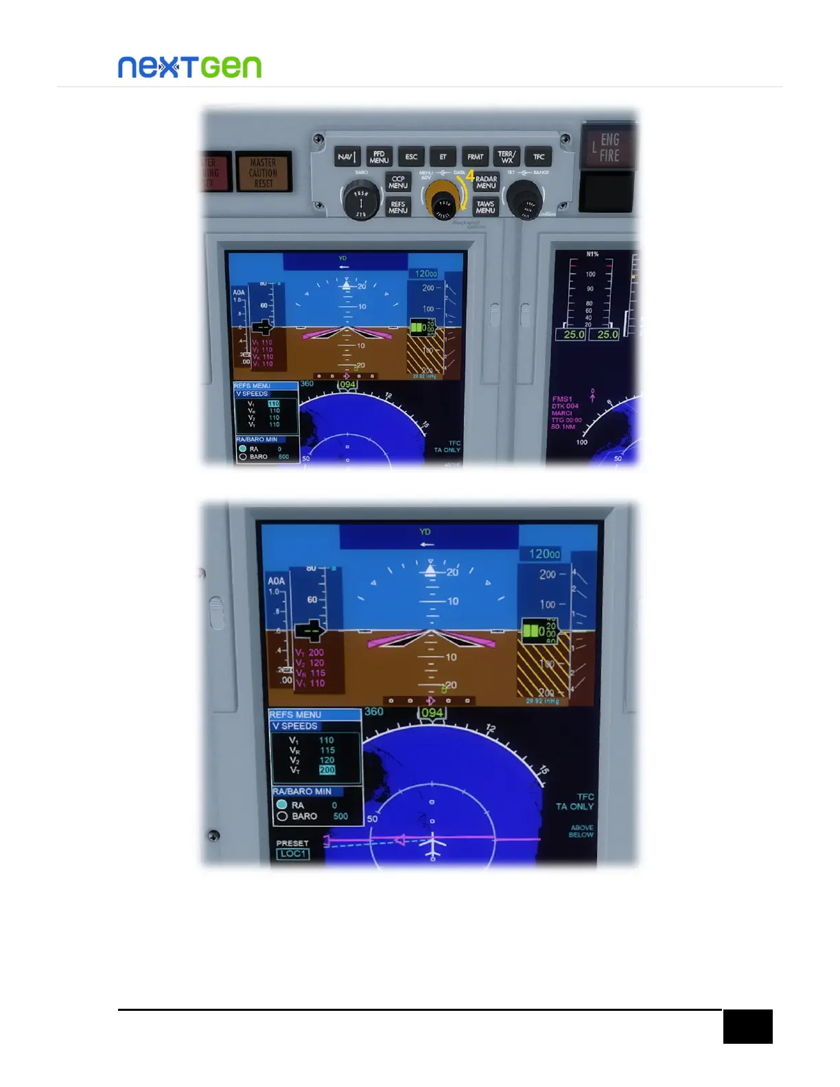 ADV knob until you see the cyan box highlighting the RA/BARO MIN panel. We will work here