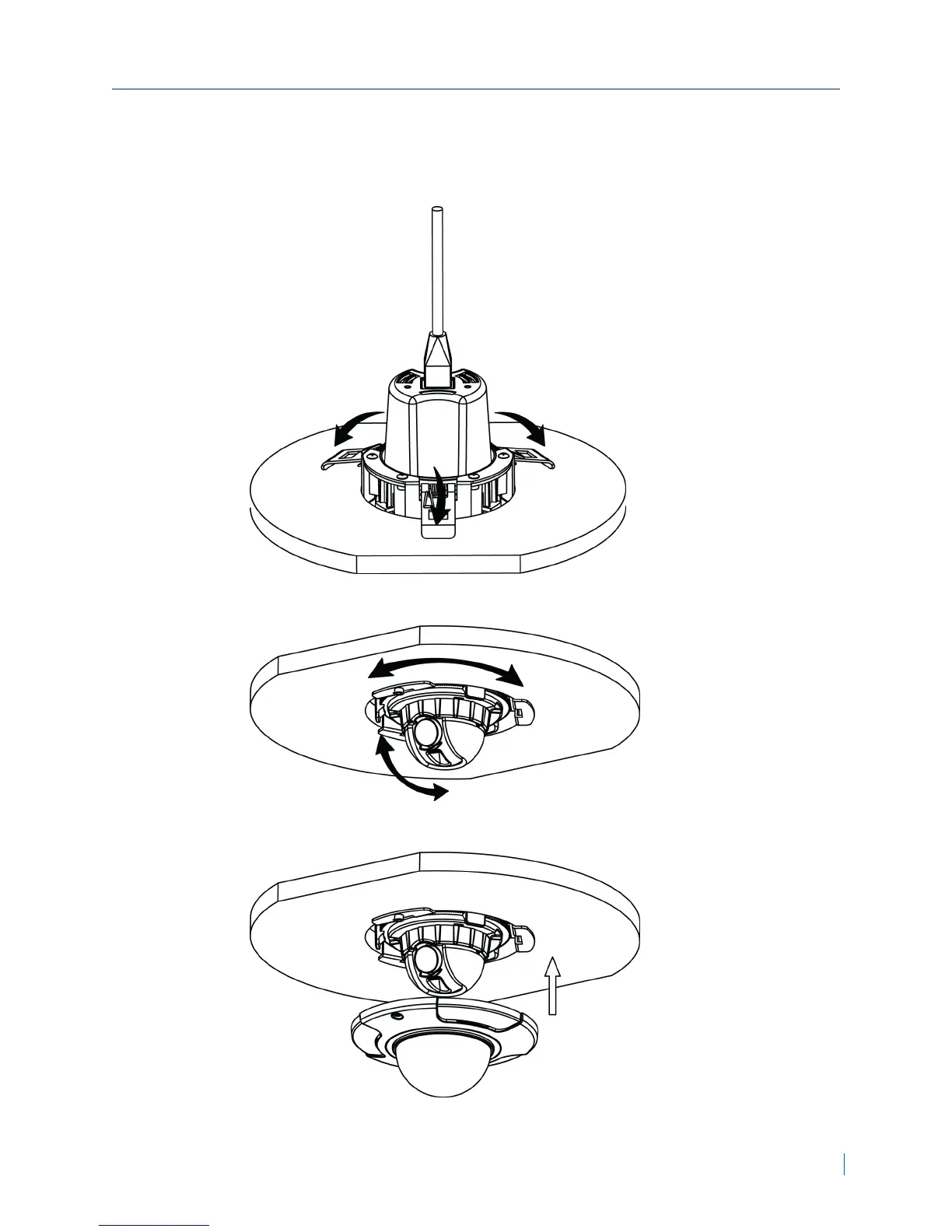 4. Pull up the three brackets, and insert the camera into the hole. The brackets