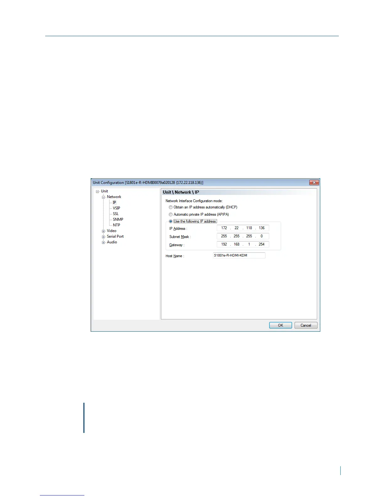 4. In the tree view, click Unit >Network > IP.