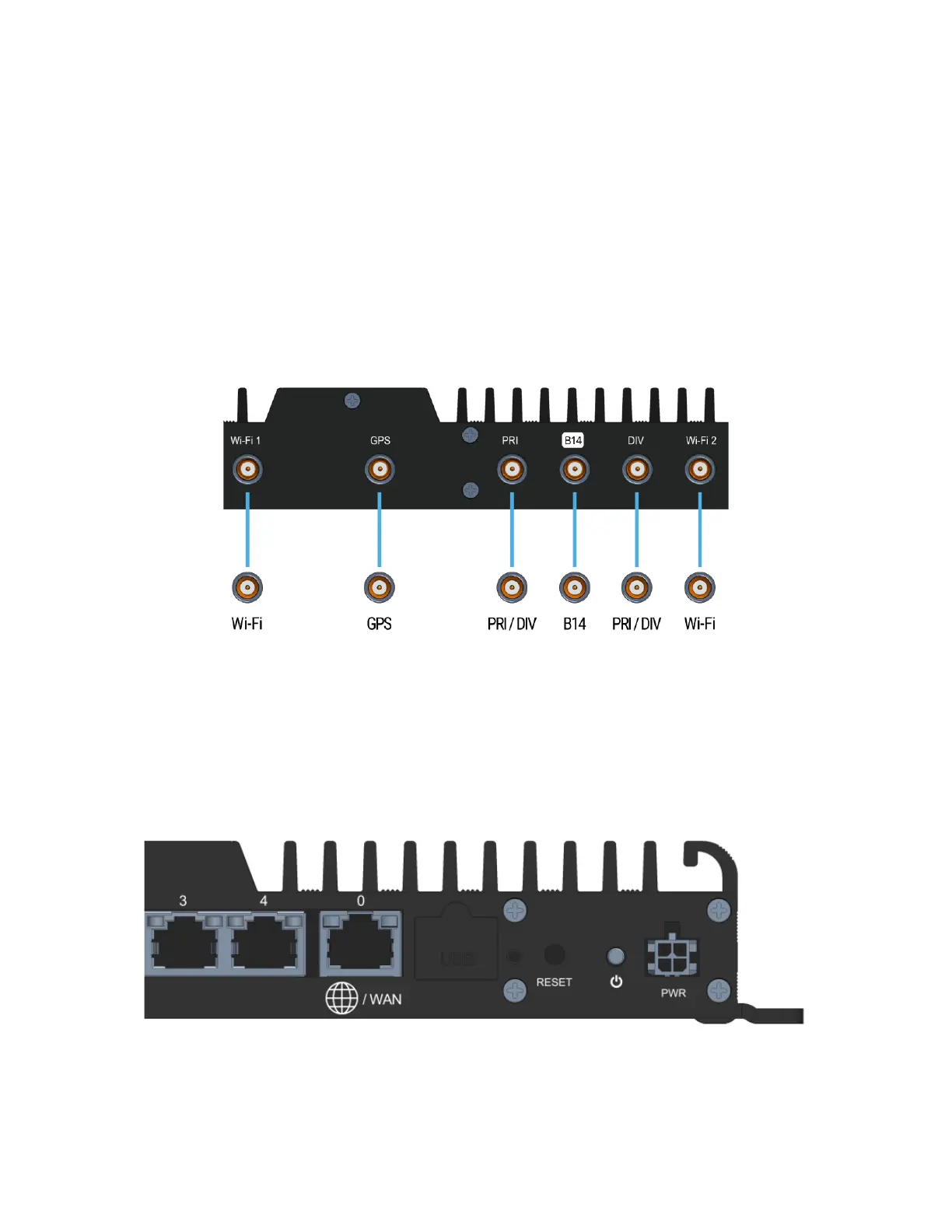 1) The antennas are labeled and will be screwed onto the port as noted in the Quick Start Guide