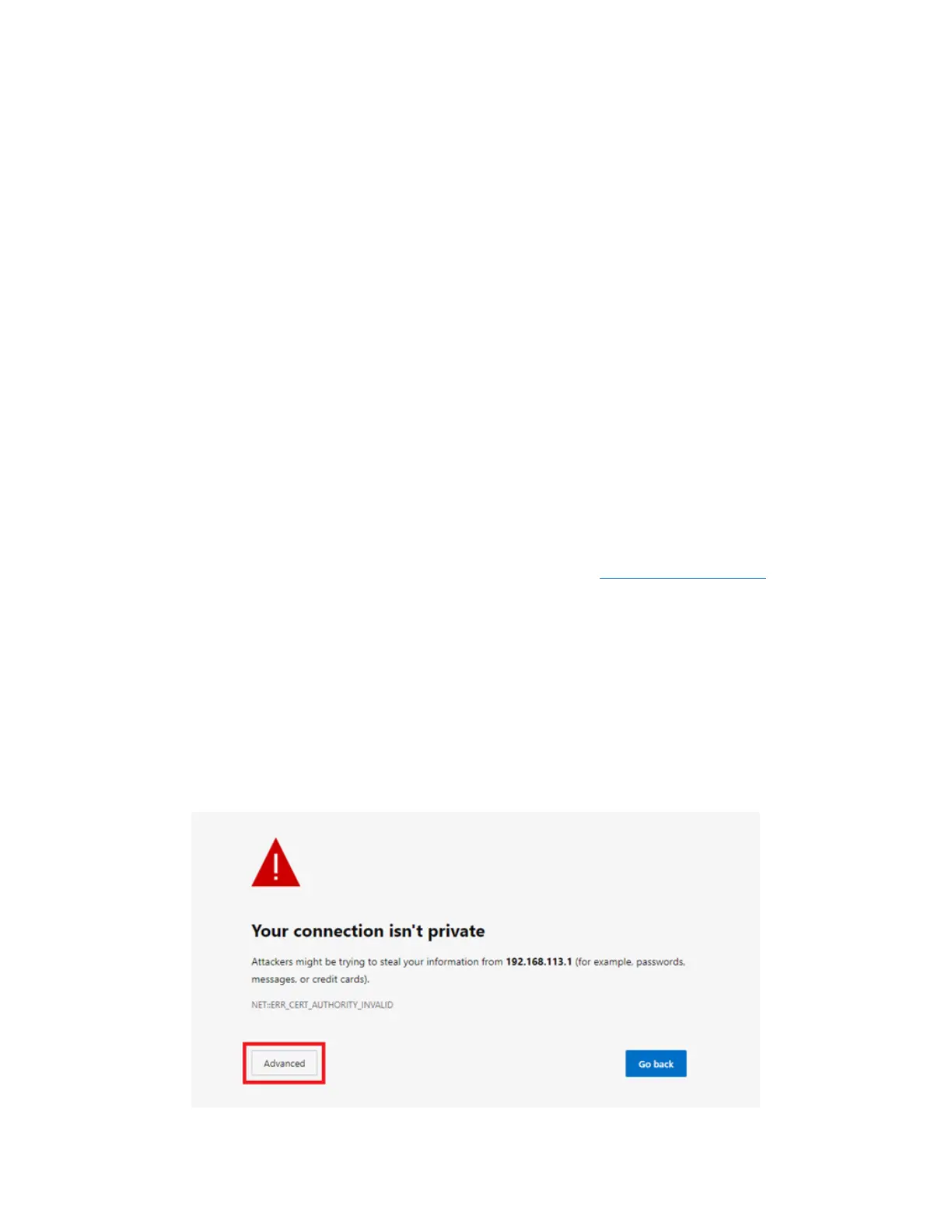 2) Open a web browser to the following default LAN IP address: https://192.168.113.1