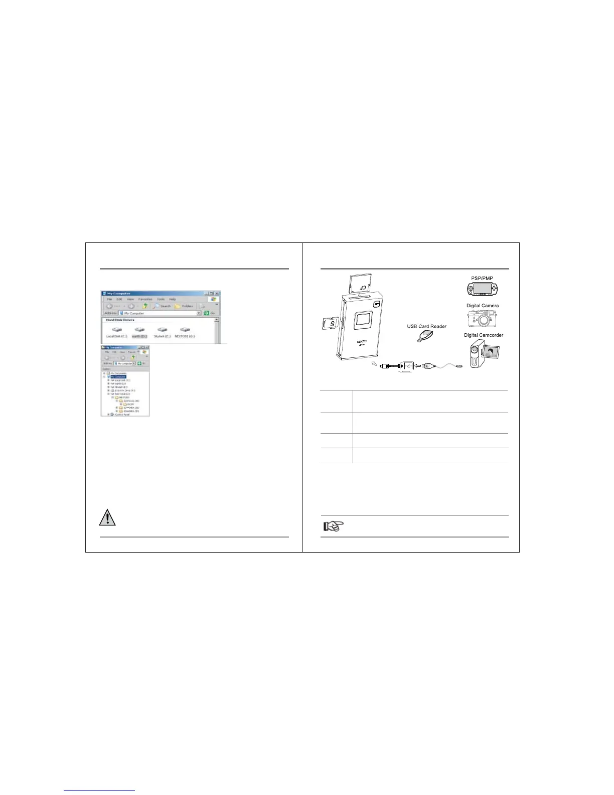 • The Nexto Video Storage cannot be used to connect CF cards, or other video