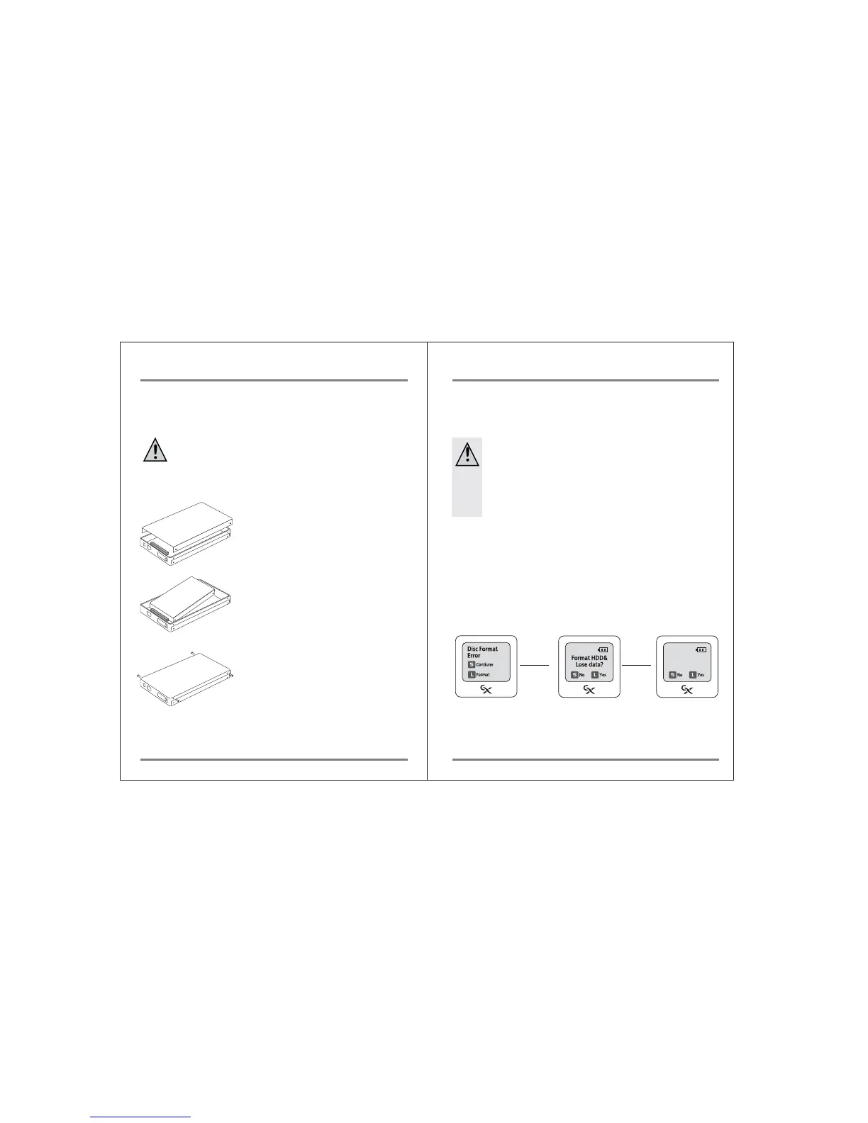 will appear ("Disk Format Error"), indicating that the drive is not formatted (new drives are
