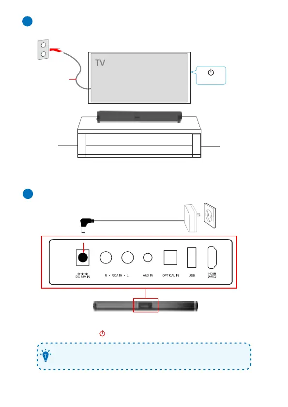 1. Connect the soundbar to power by using the supplied AC/DC adapter.