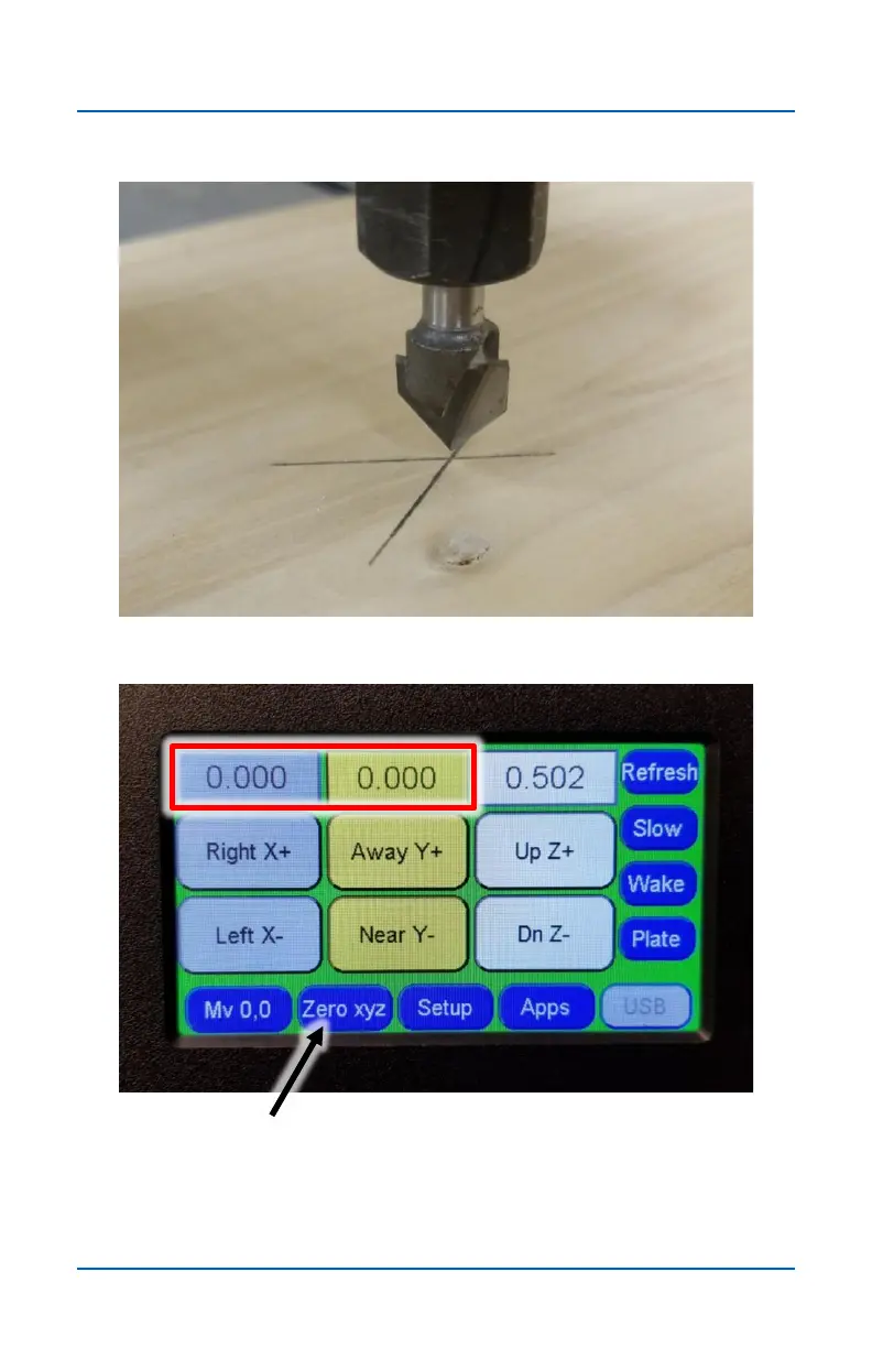 pencil mark. Press Zero xyz to zero the X and Y axes (tip of