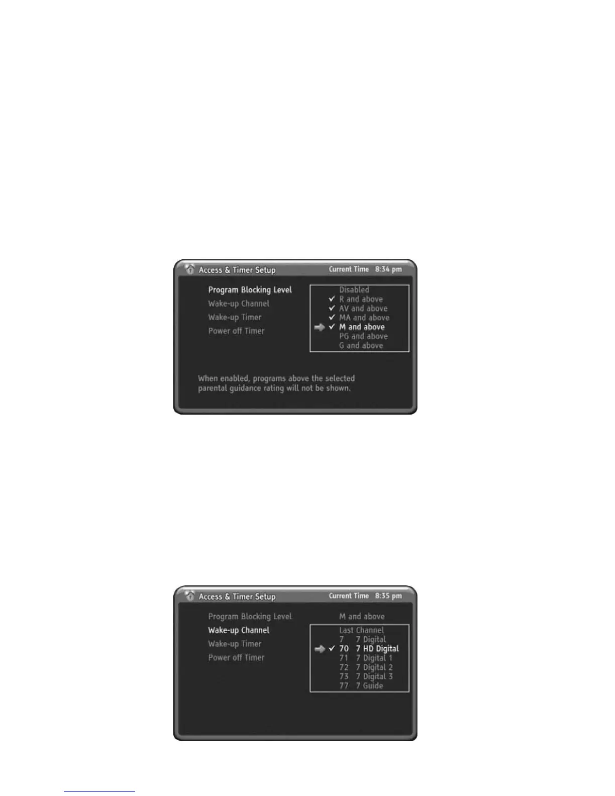 6) Press UP or DOWN to select the Program Blocking Level you want to setup.