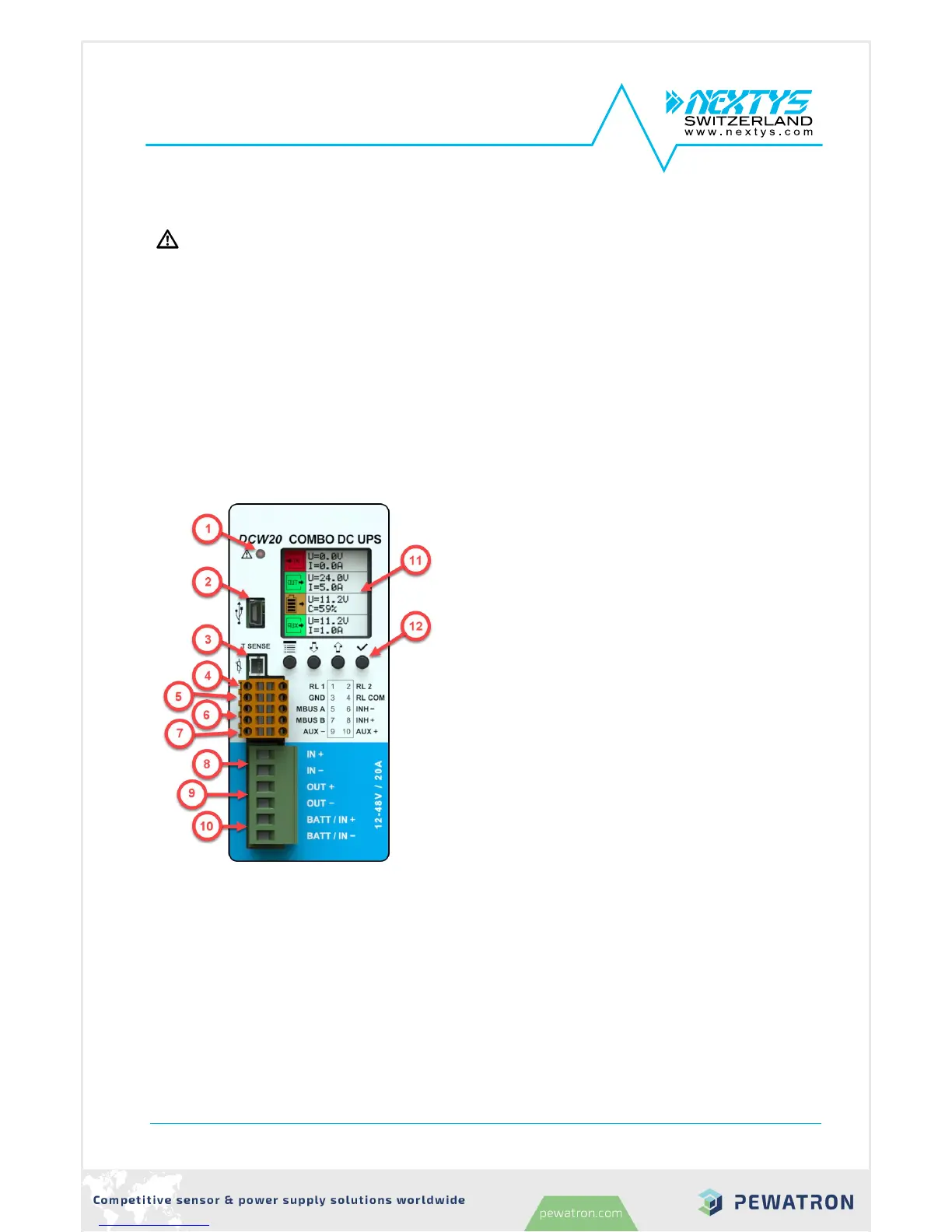 any supply voltages (12…48Vdc) it may use also multiple battery configuration (10…58Vdc). DCW20