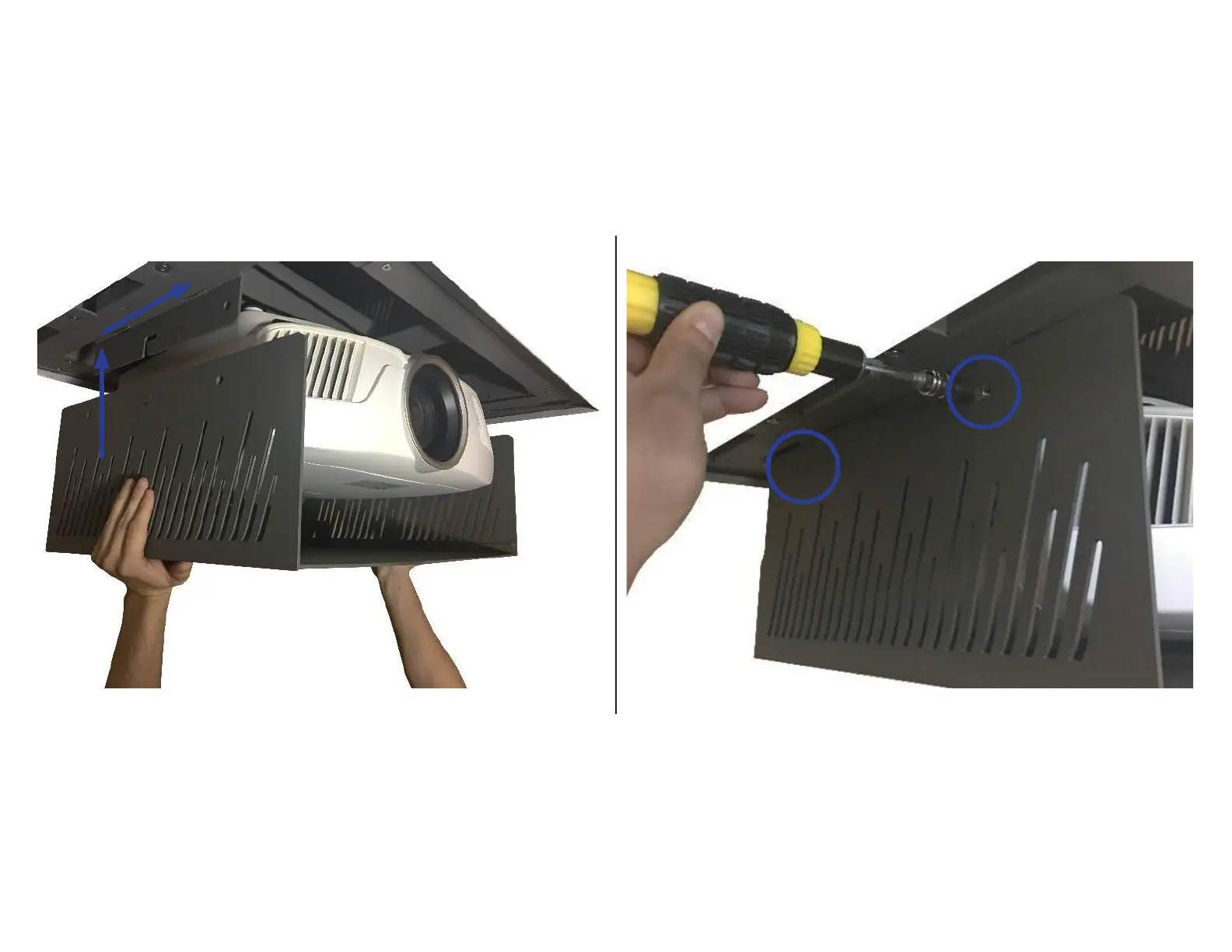 Step 12: Press and slide the Carrier Shroud up and into the L shaped slots located on the left and right side of the Crossmember then fasten it using (4) 10-32 x