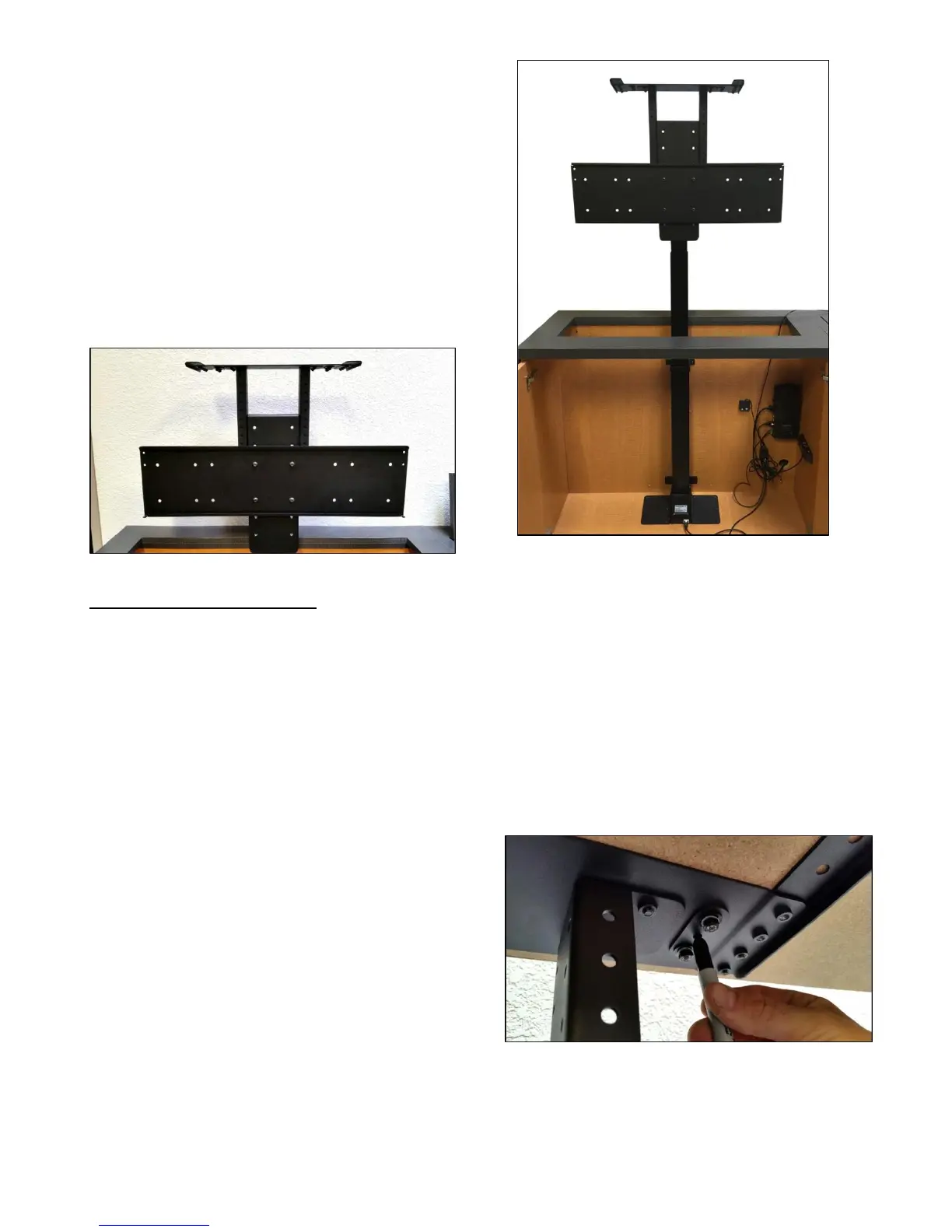 Step 13: Before installing the Tapered Pins, position the Cabinet Lid. With the TV and the Lift System in the