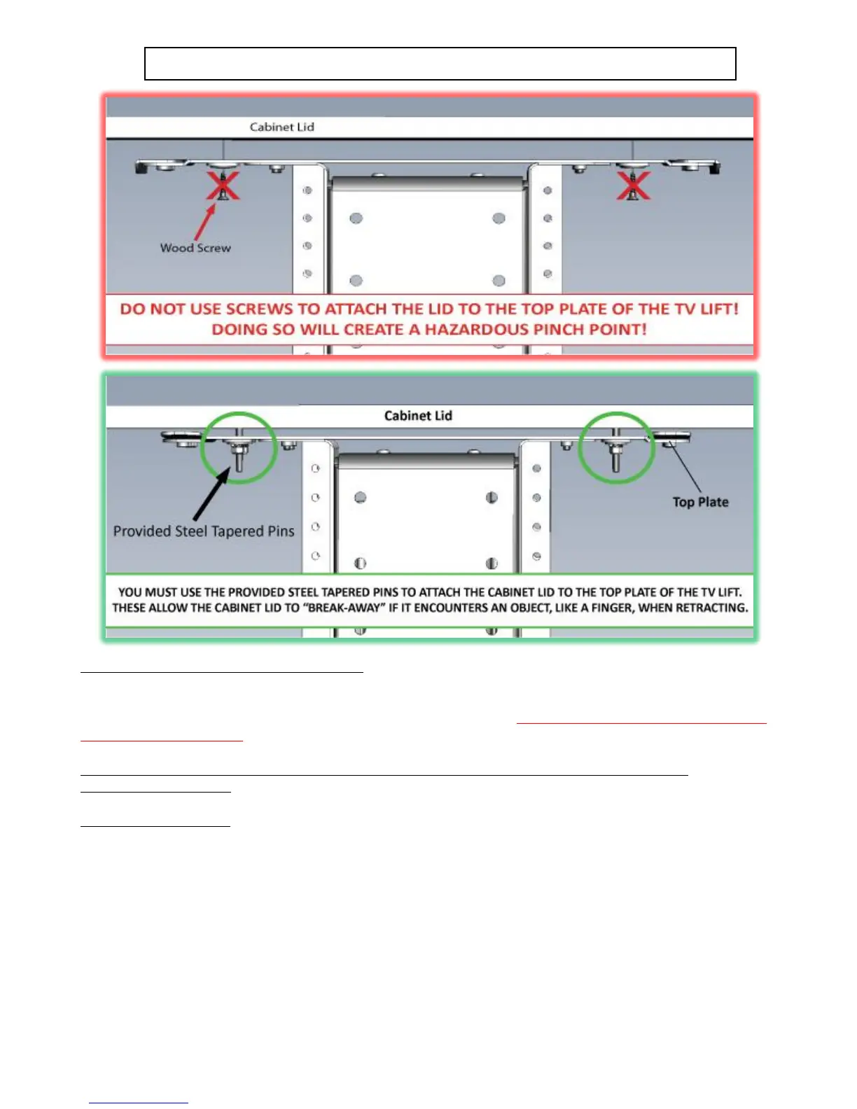 size of your TV. That cut-out lid then sits on the Top Plate of the Lift System, held in place by the Taper Pins, and