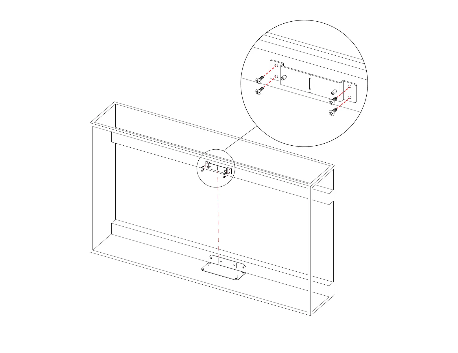 3. Attach the Column Clamp Base to the rear of the cabinet 23.5” [59.7cm] from the top of the Base Mount using (4) #10 x 3/4 THWS.